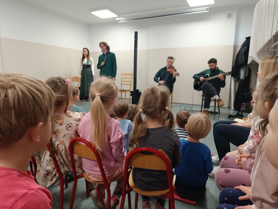 25 lutego nasze przedszkole odwiedzili artyści Arte-Muza z audycja muzyczną na Zielonej Wyspie. Było to wydarzenie pełne radości, energii i wspólnej zabawy. Dzieci aktywnie uczestniczyły w proponowanych zadaniach, rozwiązywały muzyczne zagadki, grały na instrumentach oraz wspólnie muzykowały. Artyści pochodzący z Irlandii wprowadzili uczestników w klimat Zielonej Wyspy poprzez naukę tańca, barwną paradę oraz tradycyjną muzykę irlandzką, tworząc niezapomnianą, pełną wrażeń atmosferę. 🍀🪇