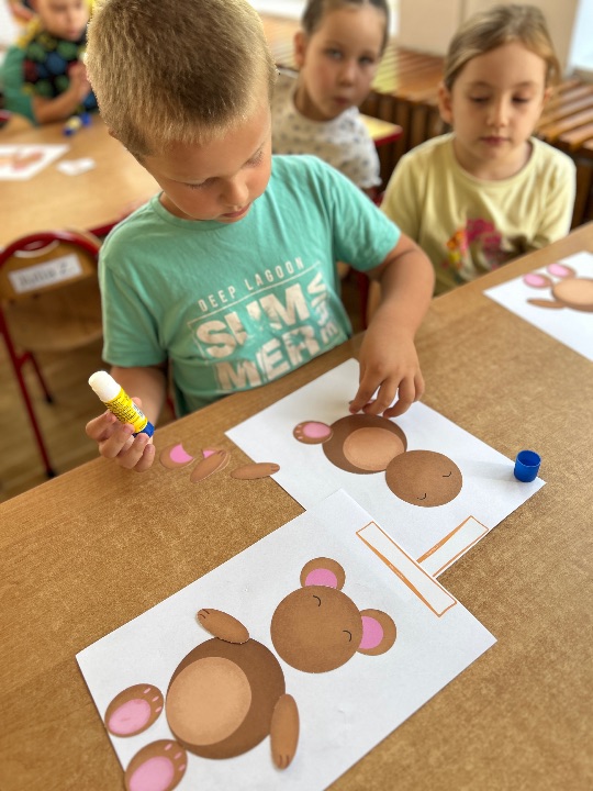 Podczas czwartkowych zajęć dzieci rozwijały spostrzegawczość, logiczne myślenie i umiejętność odwzorowywania wzorów. Wykorzystując kolorowe figury geometryczne, przedszkolaki tworzyły układy zgodnie z przygotowanymi schematami. Zabawa z kształtami nie tylko uczy, ale także sprawia wiele radości i rozwija wyobraźnię.