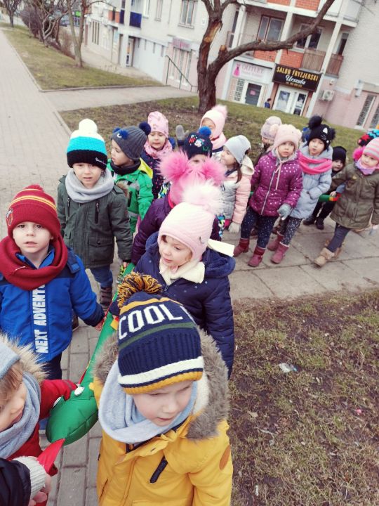 Dzisiaj grupa II odbyła pierwszy marcowy spacer. Dzieci próbowały dostrzec zjawiska pogodowe zachodzące w marcu.