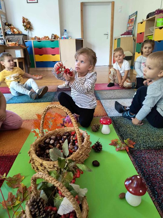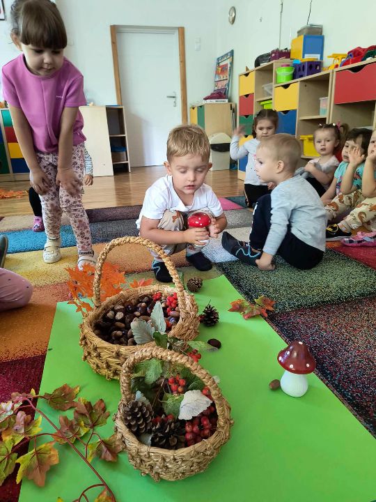 W tym tygodniu zapoznazapoznawaliśmy się z obecną porą roku oraz charakterystycznymi dla niej cechami. Dzici poznały dar jesieni, szukaliśmy również jej oznak w przyrodze.
