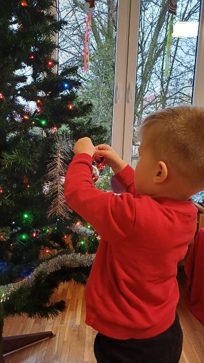 W naszej sali zjawił się wyjątkowy gość - choinka, którą wspólnymi siłami i z dużym zaangażowaniem pięknie przystroiliśmy.