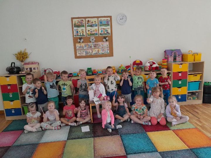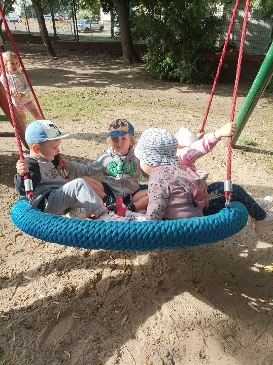 Nasze maluszki już od pierwszych dni w przedszkolu aktywnie spędzają czas w sali, jak i na przedszkolnym placu zabaw. Uczymy się wspólnie bawić, dzielić zabawkami i bezpiecznie korzystać ze sprzętów dostępnych na podwórku.