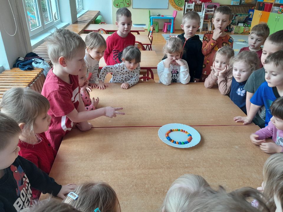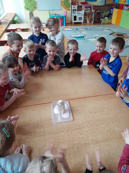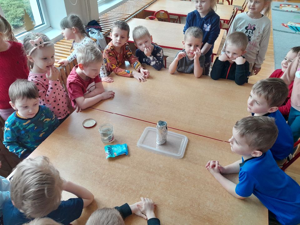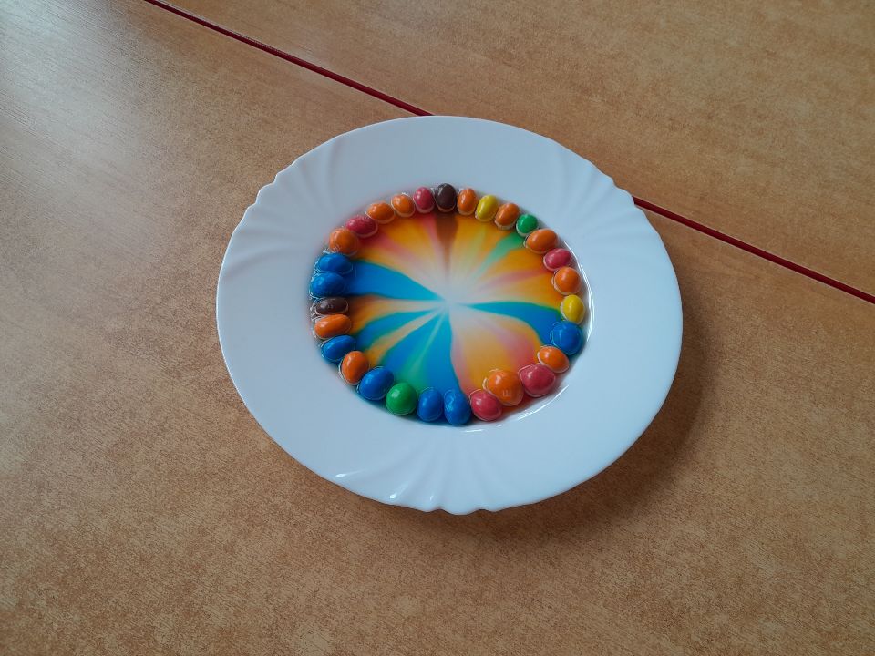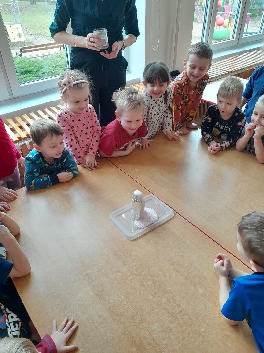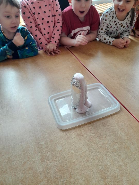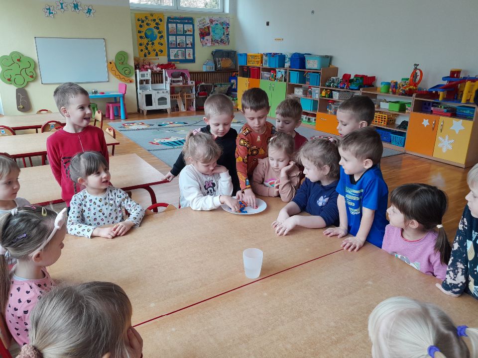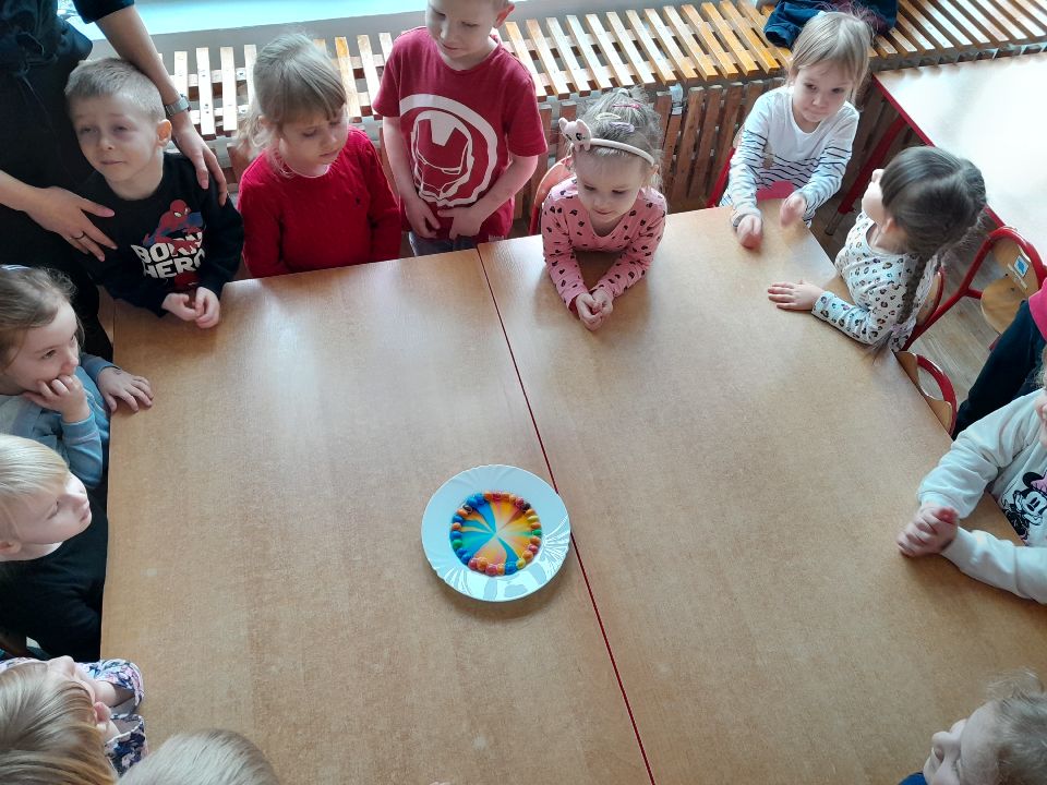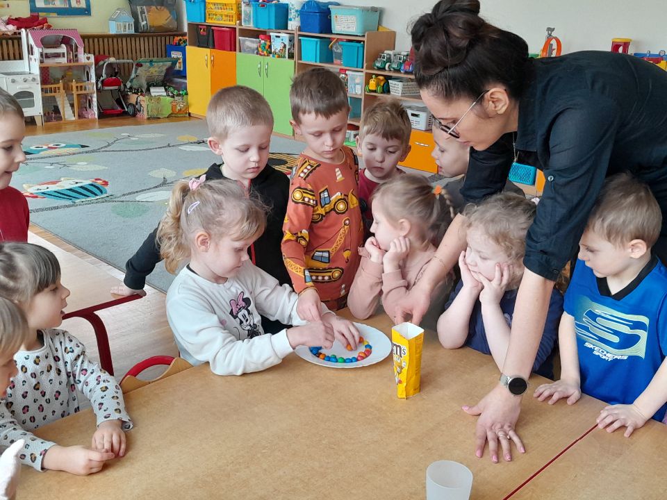 Tygodniową tematyką są doświadczenia, dlatego postanowiliśmy zrobić tęczę z cukierków oraz wulkan z sody oczyszczonej i octu. A oto efekty naszych działań...