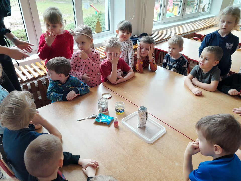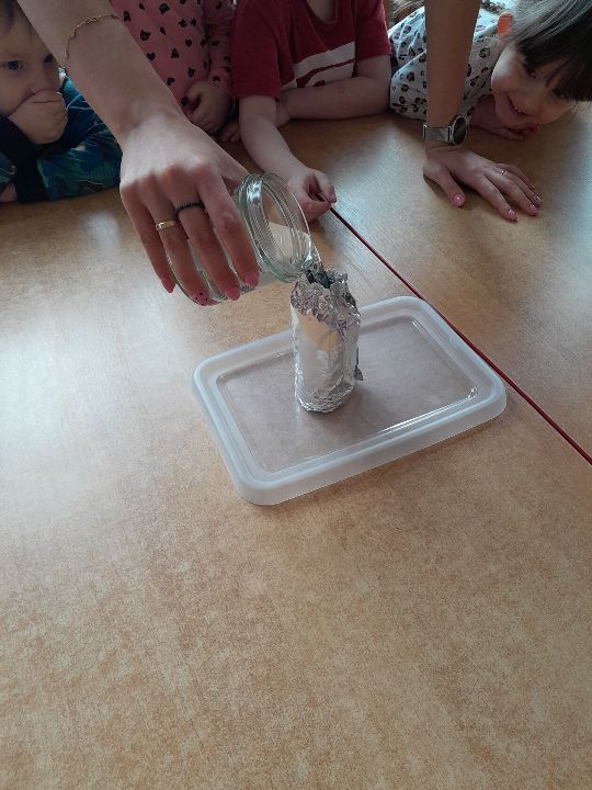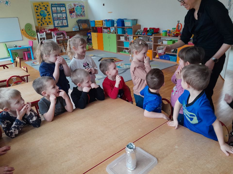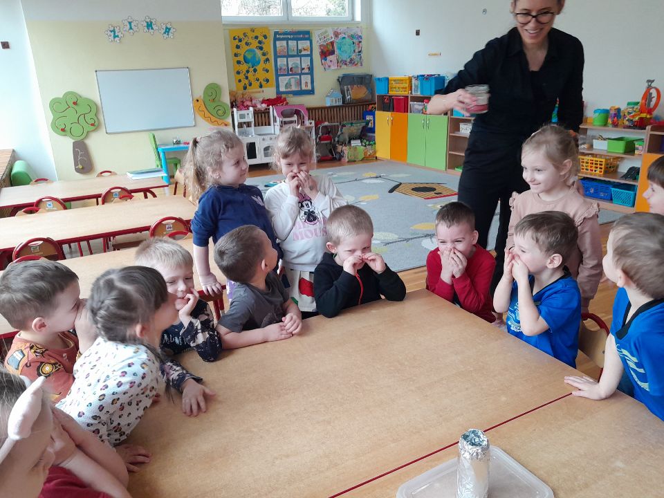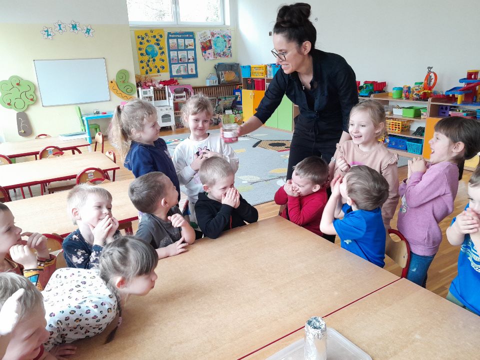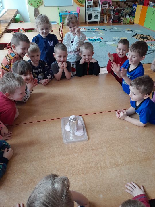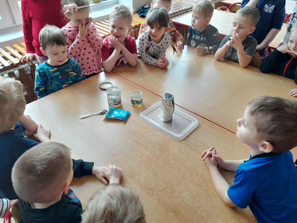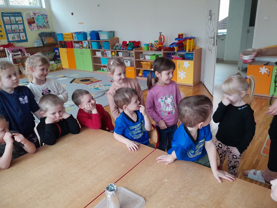Tygodniową tematyką są doświadczenia, dlatego postanowiliśmy zrobić tęczę z cukierków oraz wulkan z sody oczyszczonej i octu. A oto efekty naszych działań...