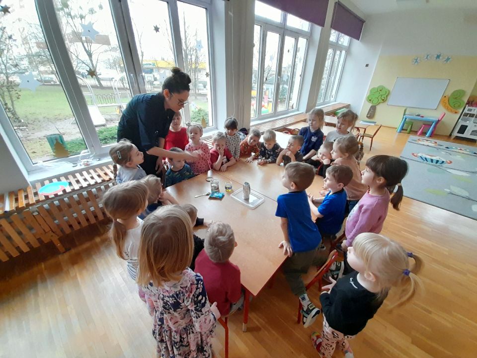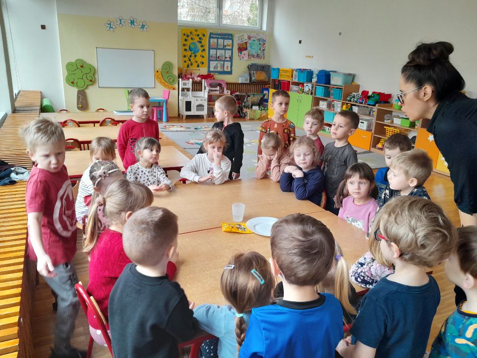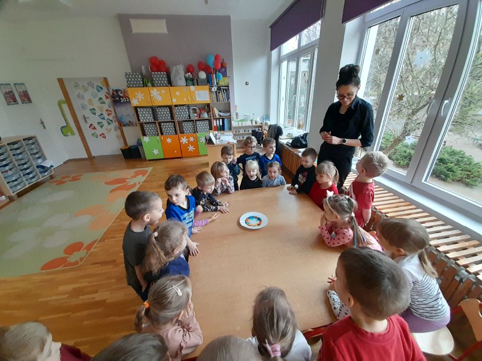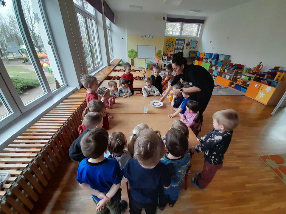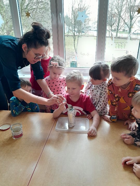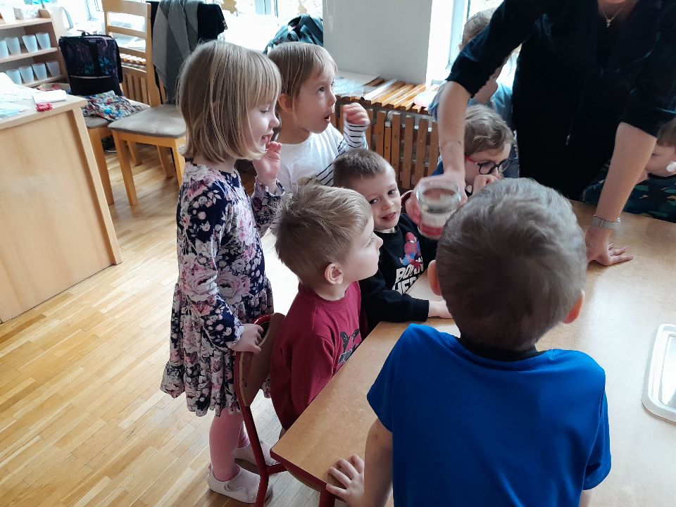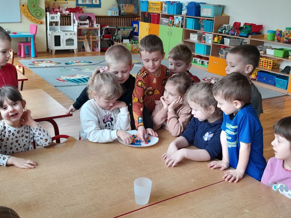 Tygodniową tematyką są doświadczenia, dlatego postanowiliśmy zrobić tęczę z cukierków oraz wulkan z sody oczyszczonej i octu. A oto efekty naszych działań...
