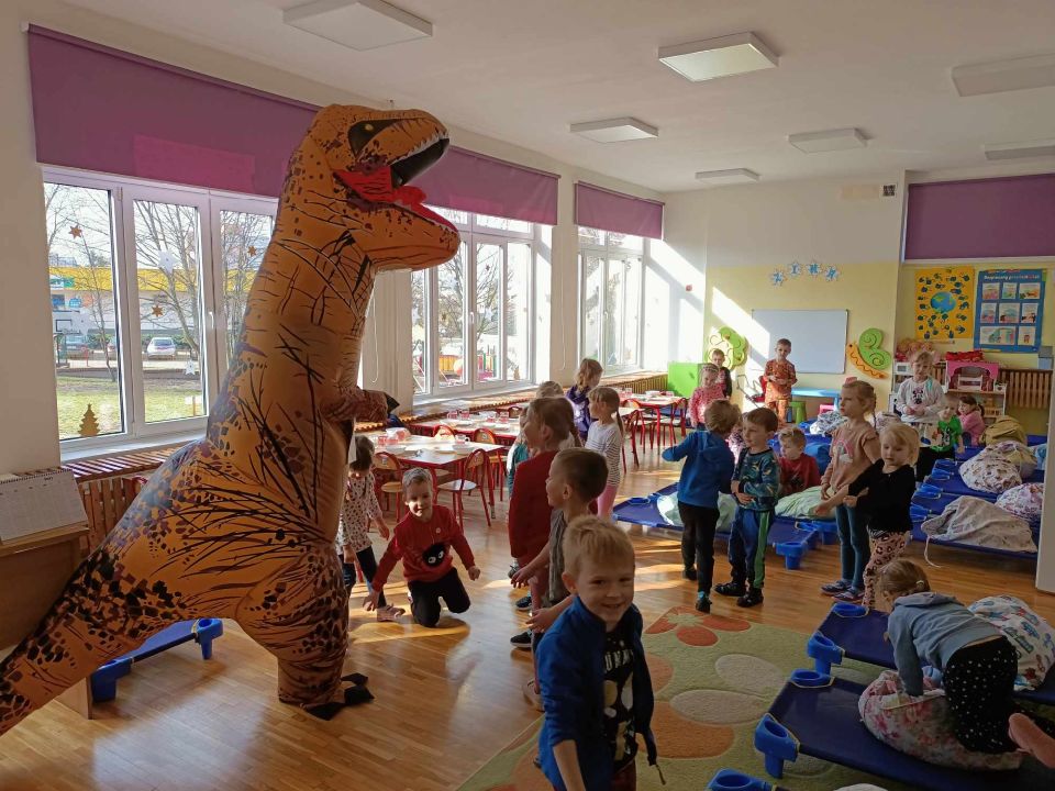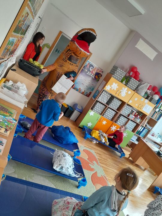 W ostatni wtorek, podczas przygotowań do drzemki odwiedził nas dinozaur z firmy EduDango. To była miła niespodzianka. Dziękujemy!