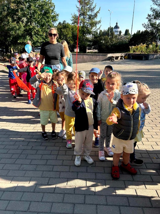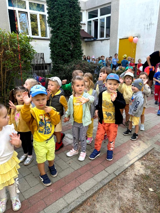 Dzień Przedszkolaka rozpoczęliśmy hucznym barwnym korowodem alejkami osiedla w rytmie skocznej muzyki. Tego dnia nasze uśmiechnięte buzie podkreślał kolor żółty, który dominował w naszych strojach.