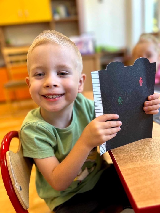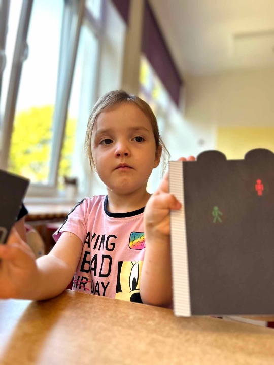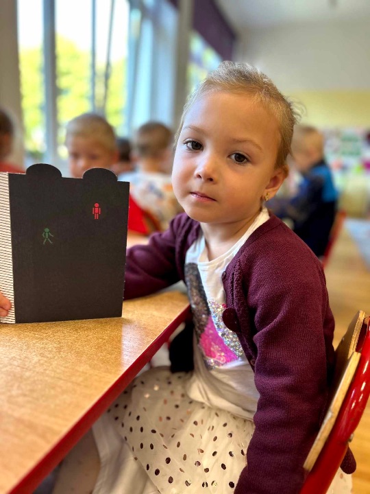 Na zajęciach o bezpieczeństwie i ruchu drogowym zapoznaliśmy się z zasadami poruszania się pieszych, poznaliśmy najważniejsze znaki drogowe, a na koniec wykonaliśmy sygnalizator świetlny. Czerwone światło – stój!Zielone światło – idź! Odblaski zawsze noś! Widocznym zawsze bądź!