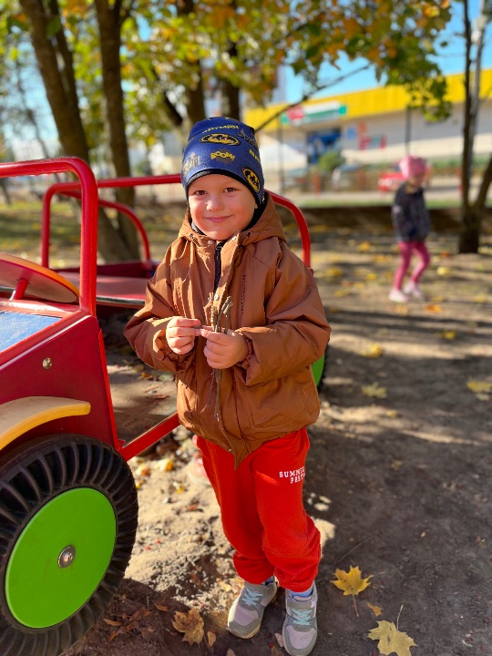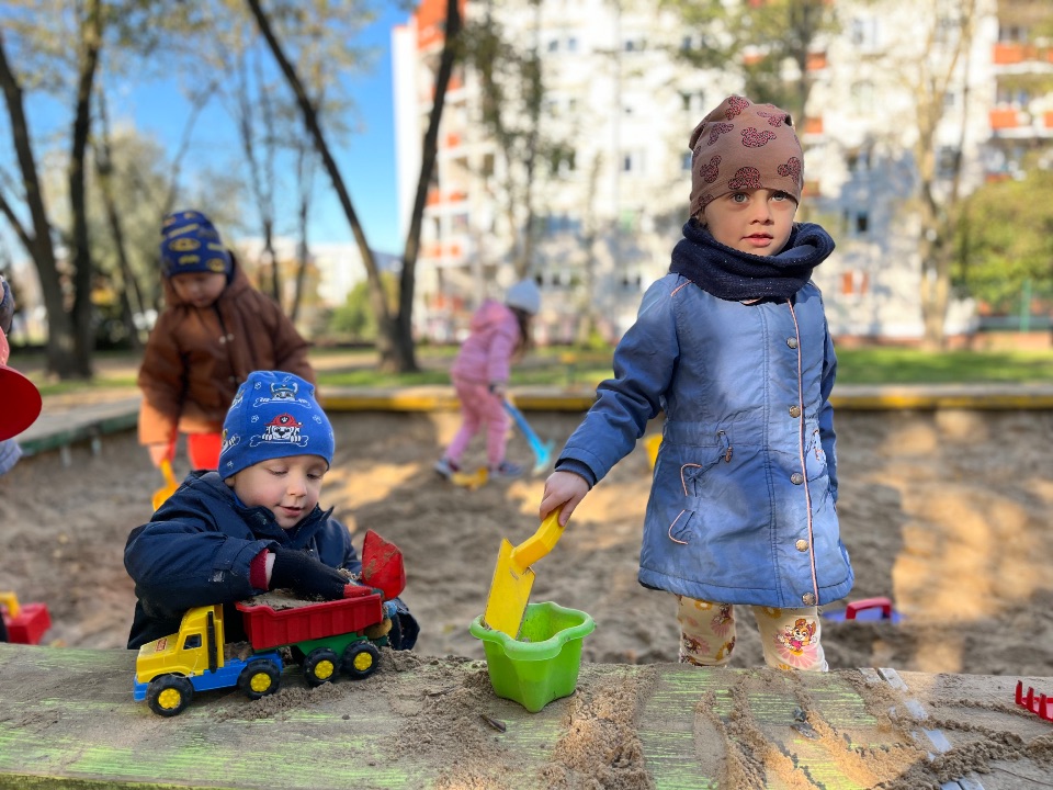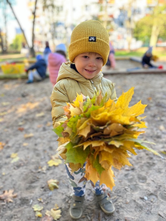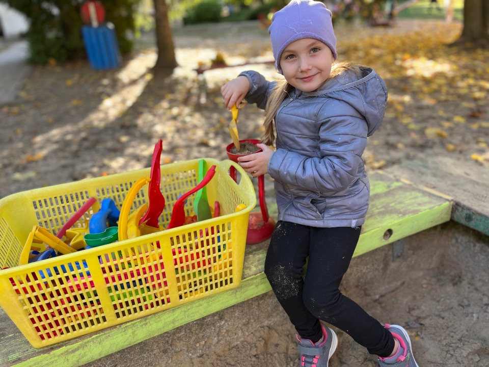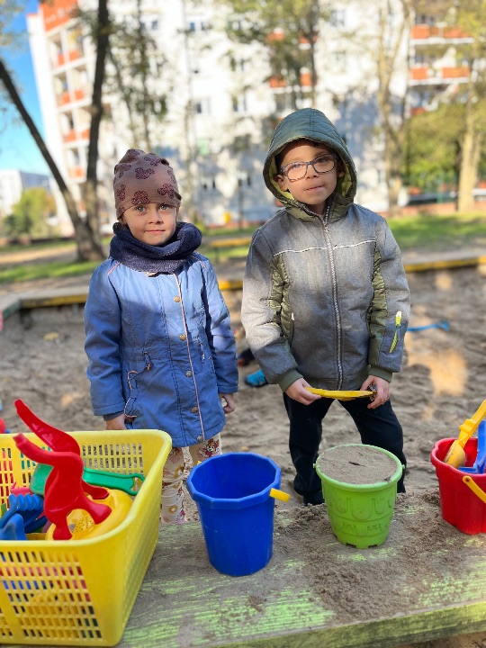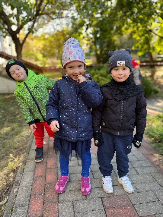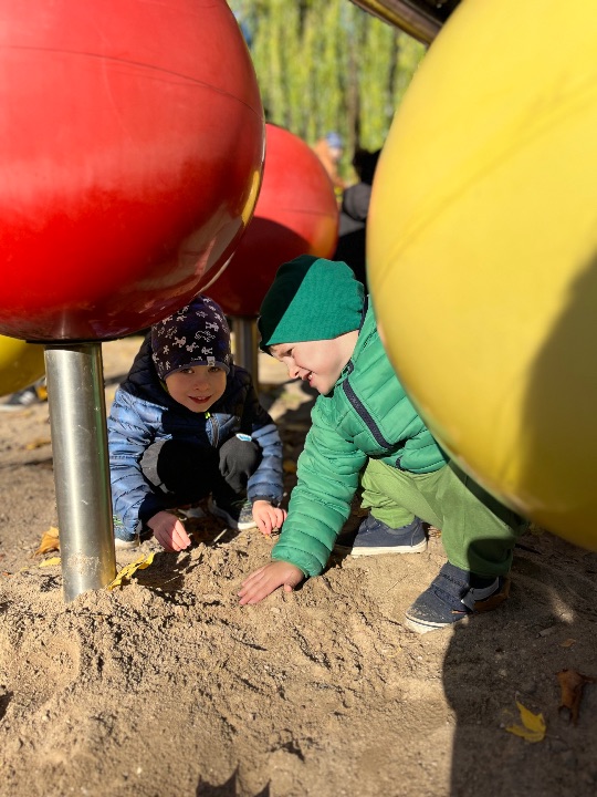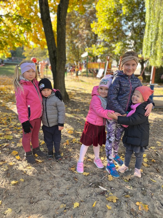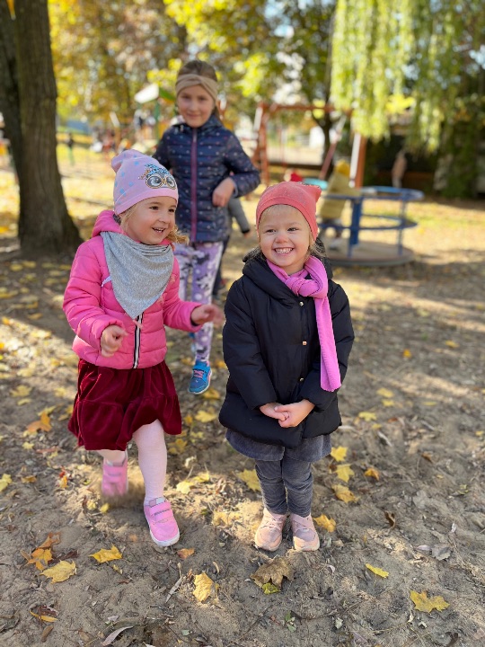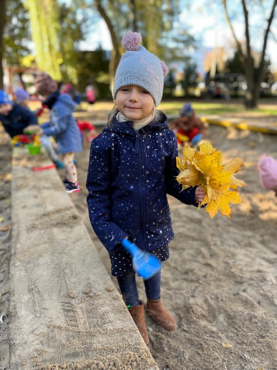 Przedszkolaki uwielbiają zabawy w przedszkolnym ogrodzie. Korzystamy z uroków pięknej jesiennej pogody.
