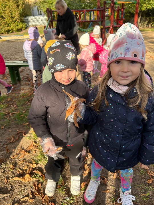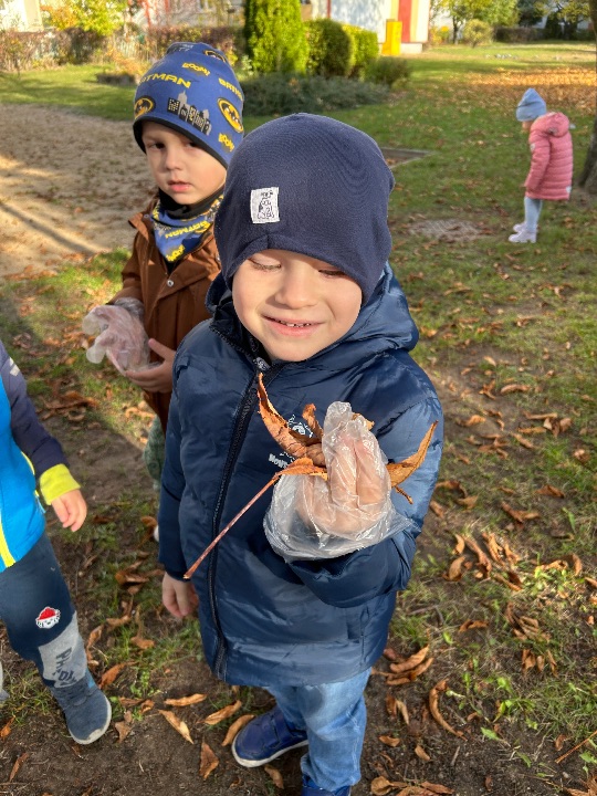Grupa II z dużym zaangażowaniem włączyła się w akcję „Ratujmy białostockie kasztanowce” i z zapałem zbierała liście spod drzew rosnących na naszym osiedlu 🌰