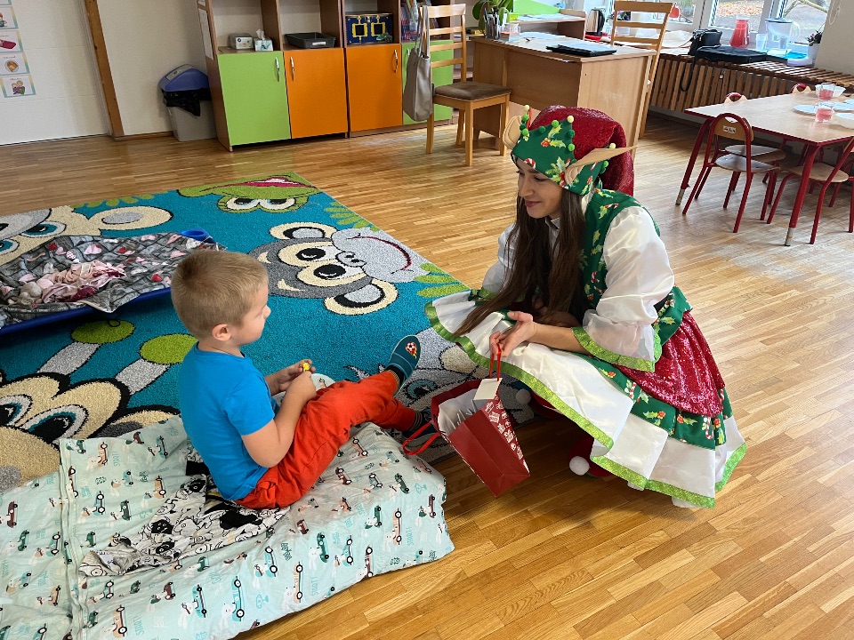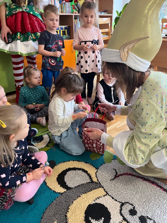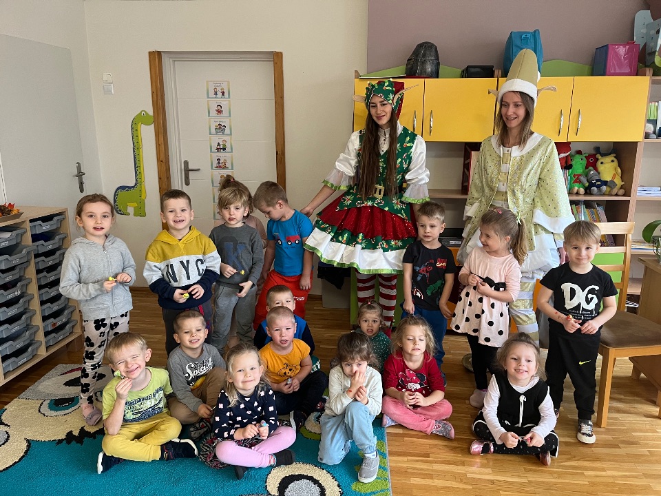 W dniu dzisiejszym mieliśmy cudowną niespodziankę. Do drzwi naszej grupy niespodziewanie zapukały… elfy we własnej osobie! To znak, że grudzień zbliża się wielkimi krokami. Dzieci były zdumione i zaskoczone, ale również bardzo szczęśliwe. Elfy przypomniały dzieciom, że czas i pora napisać list do Świętego Mikołaja oraz obdarowały każde dziecko słodkim upominkiem.
