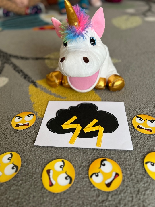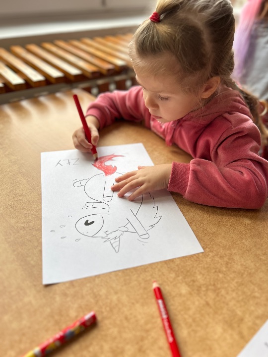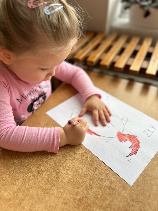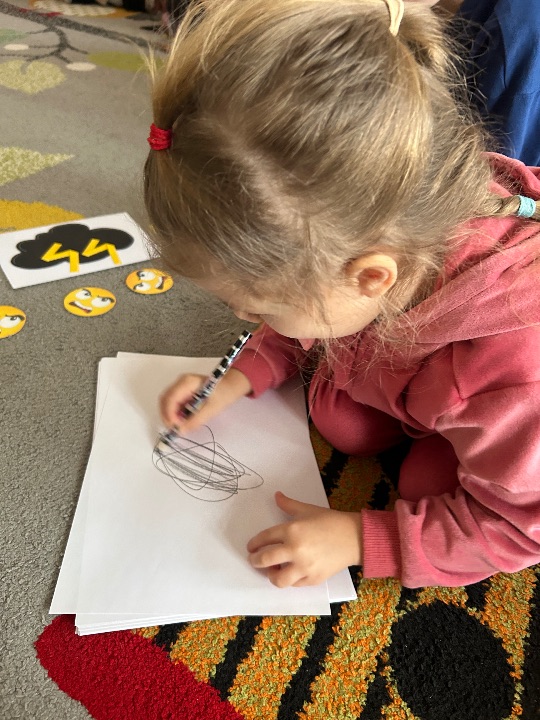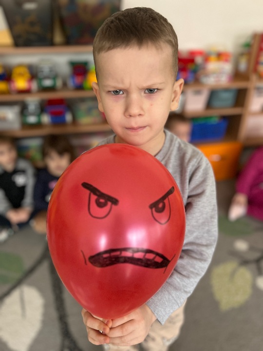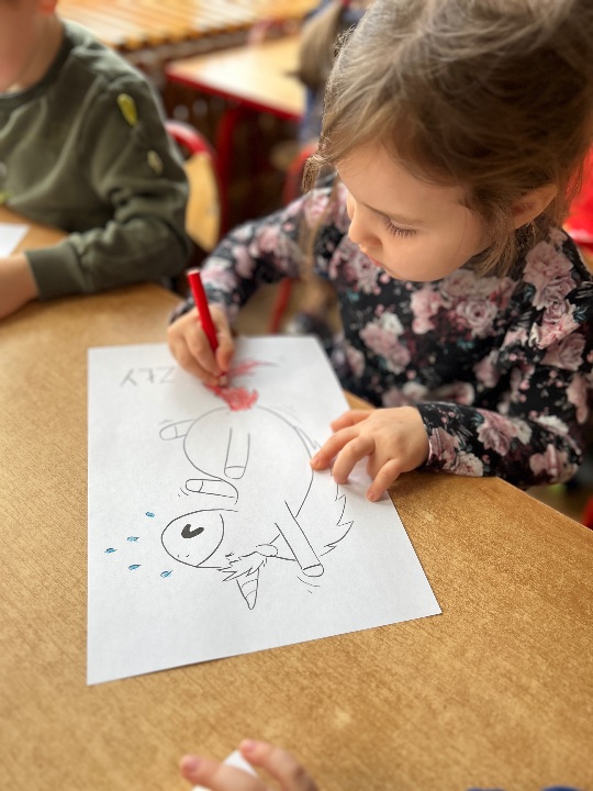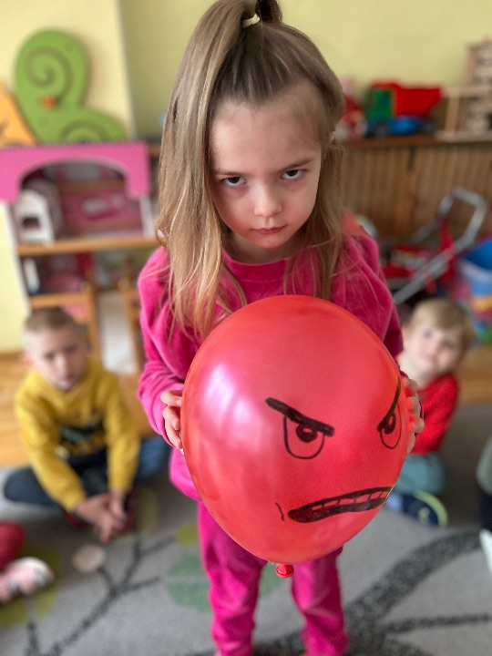 W ramach Międzynarodowego Projektu Edukacyjnego „Kolorowe Uczucia Gucia” poznaliśmy kolejną emocję, jaką jest złość. Dzieci z uwagą wysłuchały opowiadania „Gucio się złości”, wykonały ćwiczenia oddechowe, aby przegonić czarną chmurę zła. Rysowały złość na kartce papieru oraz opowiadały, co je złości, i jak można sobie z tą emocją poradzić.