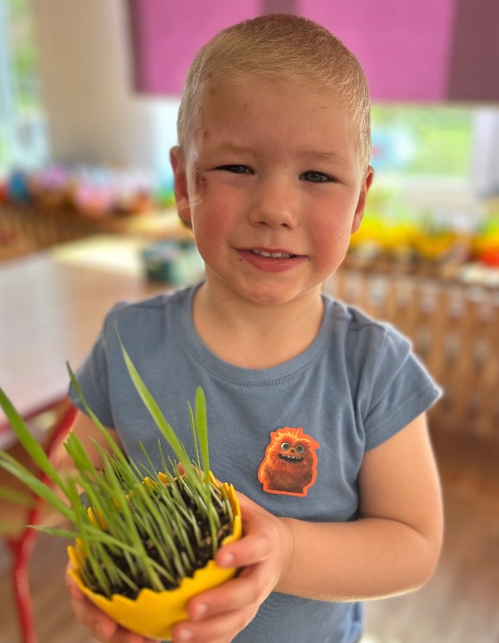 Podczas kolejnych zajęć wynikających z Międzynarodowego Projektu Edukacyjnego „Kolorowe Uczucia Gucia” dzieci wysłuchały bajki pt. „Gucio się obraża”. Historia małego jednorożca była punktem wyjścia do rozmowy o emocjach, szczególnie o obrażaniu się, złości i smutku. Dzieci dzieliły się swoimi doświadczeniami – opowiadały, kiedy i dlaczego się obrażają, co wtedy czują i jak się zachowują. Wspólnie zastanawialiśmy się, w jaki sposób można odgonić „czarną chmurę”. Wykonaliśmy ćwiczenia oddechowe oraz pracę plastyczną.