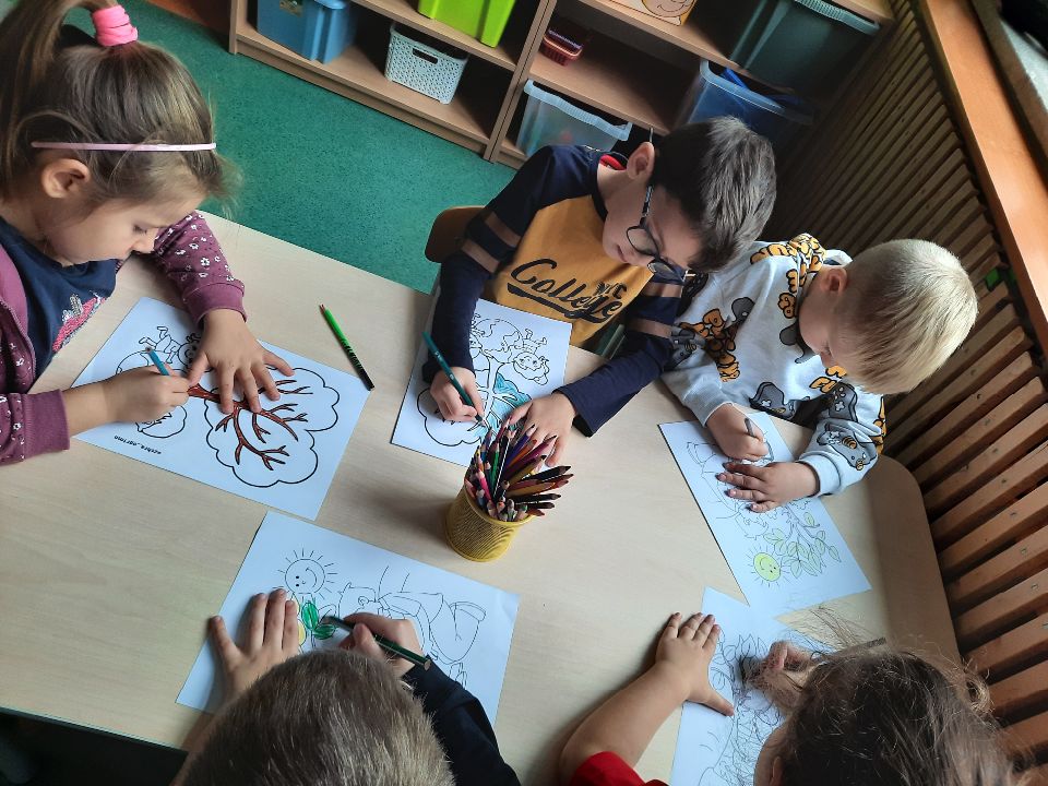 10 października to szczególny dzień w kalendarzu młodego ekologa. W tym dniu obchodzony jest Dzień Drzewa, a co za tym idzie, jest to doskonała okazja by kształtować postawę ekologiczną wśród najmłodszych oraz rozbudzać w nich poczucie odpowiedzialności za zieleń wokół nas. My też zaangażowaliśmy się w obchody tego święta poprzez inspirujące rozmowy na temat roli drzew w życiu człowieka. Bawiliśmy się przy piosenkach o drzewach i w ogrodzie przedszkolnym- przytulając drzewa, oglądając i dotykając liści. Sprawdzaliśmy też czy kora drzewa jest chropowata czy gładka i ilu nas potrzeba, żeby pień drzewa objąć. Czekały na nas jeszcze super kolorowanki - o drzewach właśnie.🌲🌳