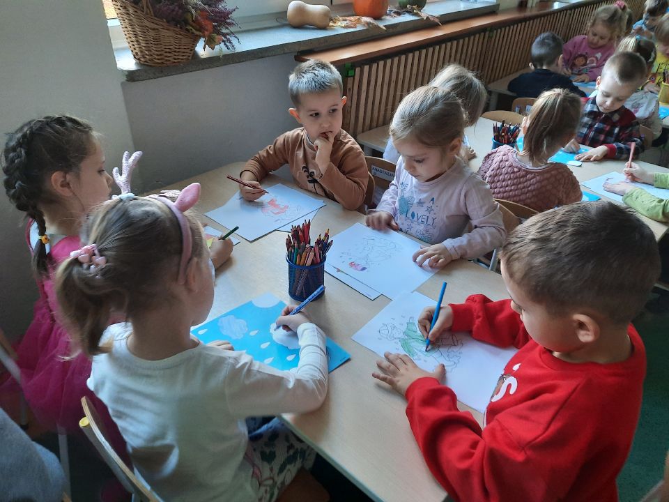 Wróćmy na moment do obchodzonego 25 października Dnia kundelka i zabaw w których uczestniczyliśmy. Jedną z nich była zabawa „Kości dla gości”- zabawa matematyczna kształcąca umiejętność liczenia, inspirowana wierszem ,,As, pies co lubił się dzielić ". Była też zabawa plastyczna- nasze Burki wyszły fenomenalnie.