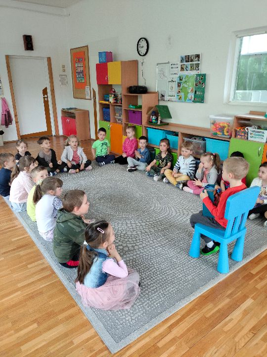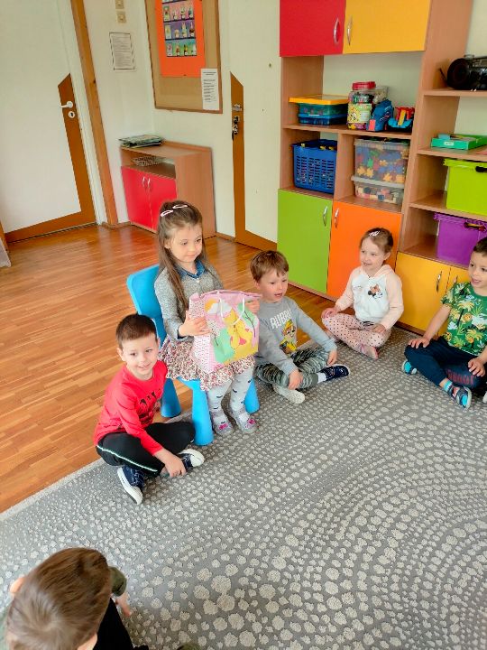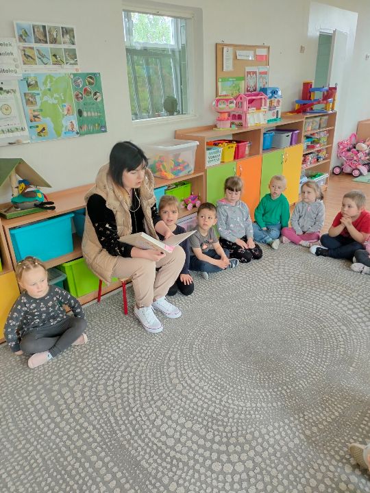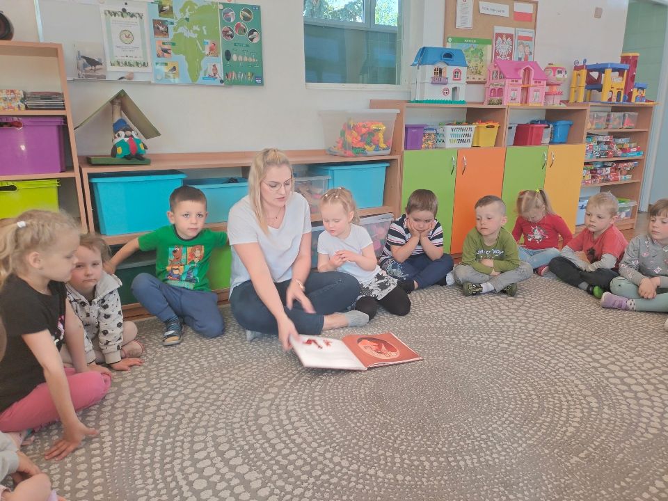 Dnia 1 czerwca odwiedziła nas mama Kai. Pani Kasia przyniosła ze sobą dwie książki o bardzo interesujących tytułach. Dzieci same zadecydowały, która pozycja ma być przeczytana jako pierwsza. Zainteresował je tytuł „Książka bez obrazków”, przecież wszystkie książeczki dla dzieci mają kolorowe obrazki. Podczas słuchania okazało się, że słowo pisane może być niewyczerpalnym źródłem zabawy i psot. Druga książka nosiła tytuł "Mysz, która chciała być lwem" i zawierała już ona piękne ilustracje. Przedszkolaki z ogromnym zainteresowaniem wysłuchały opowiastki o tym jak bardzo nie doceniamy samych siebie i że należy wierzyć we własne siły. Spotkanie z panią Kasią zakończyło się słodką niespodzianką. Dziękujemy za miło spędzony czas i słodką przekąskę.
