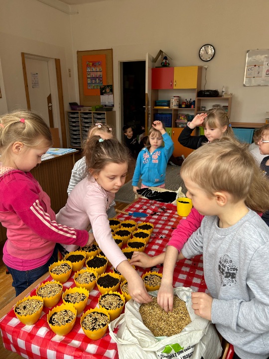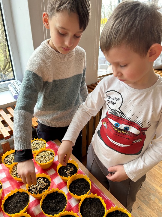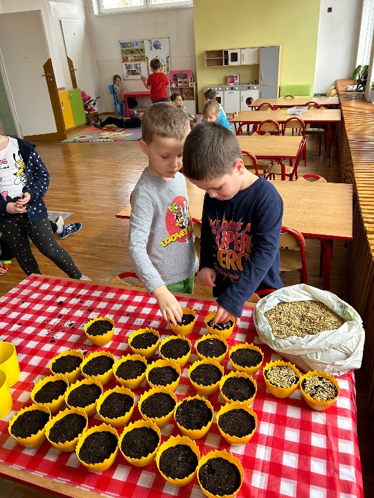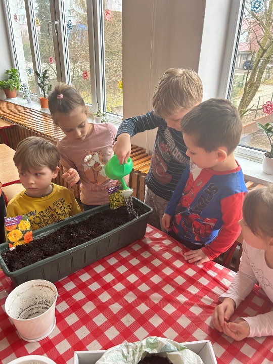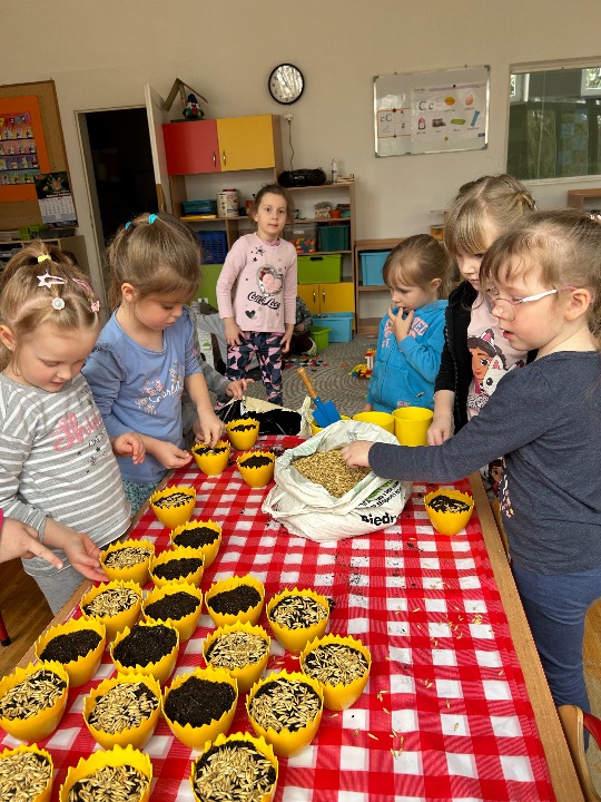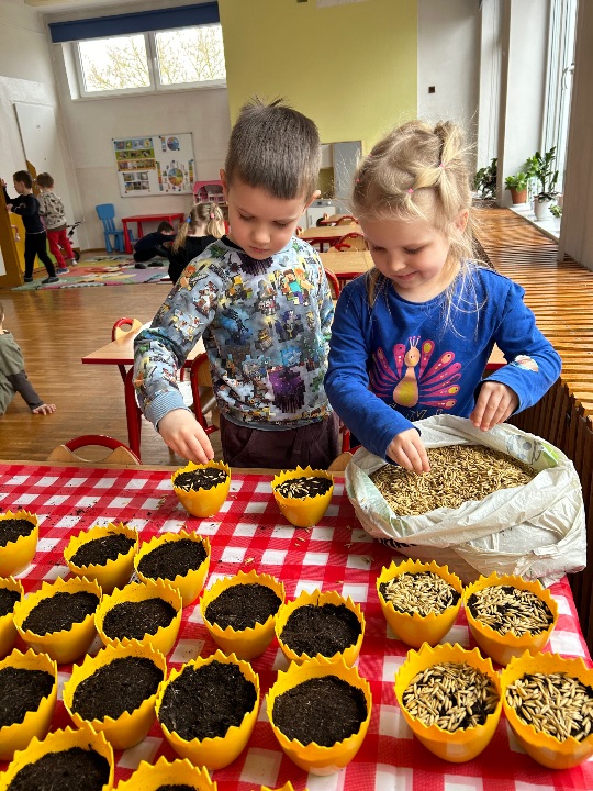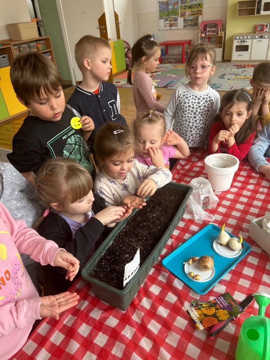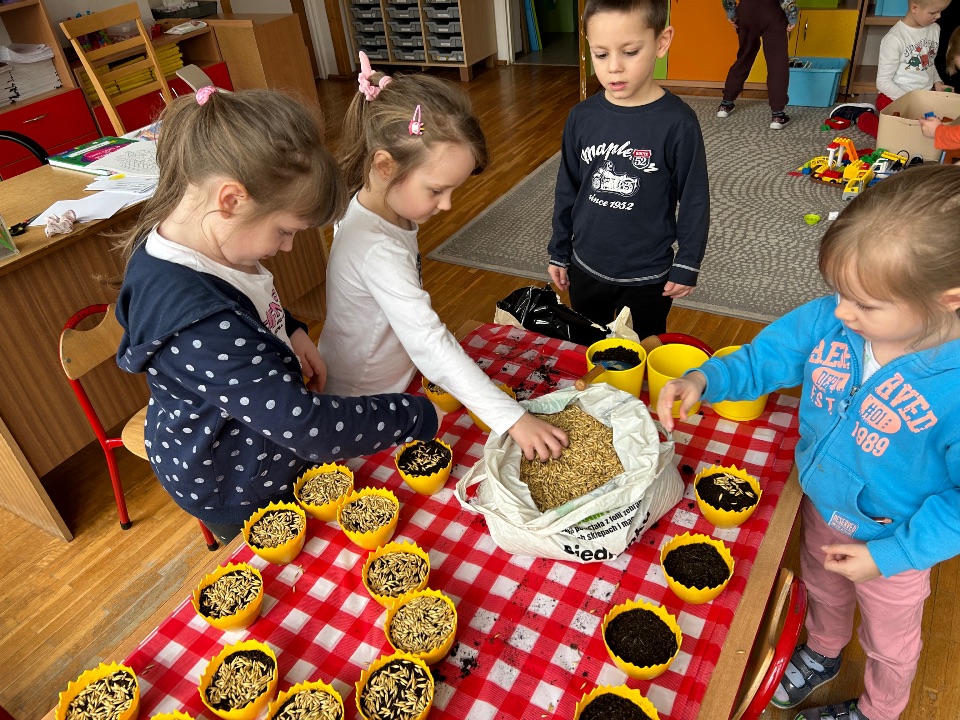 Wiosna zawitała do naszej sali przedszkolnej! Na parapecie okna założyliśmy „zielony ogródek” i prowadzimy hodowlę warzyw i kwiatów (np.: szczypiorek, fasolka, owies, aksamitki i tulipany .Wiemy już, że aby roślinki pięknie rosły potrzebna jest woda i słoneczko. Teraz będziemy każdego dnia je obserwować i podlewać.
