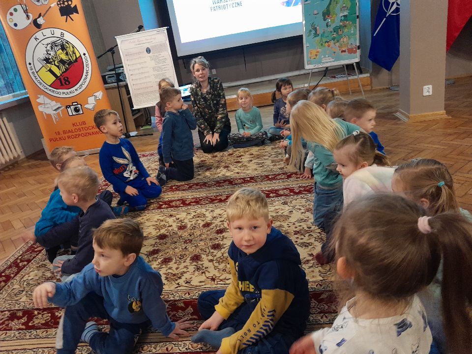 To już kolejna nasza wizyta w Klubie 18. Białostockiego Pułku Rozpoznawczego. Tym razem uczestniczyliśmy w warsztatach patriotycznych "Mały patriota rozumie".