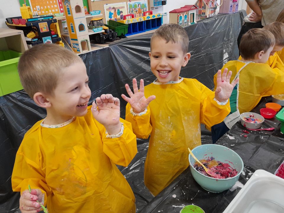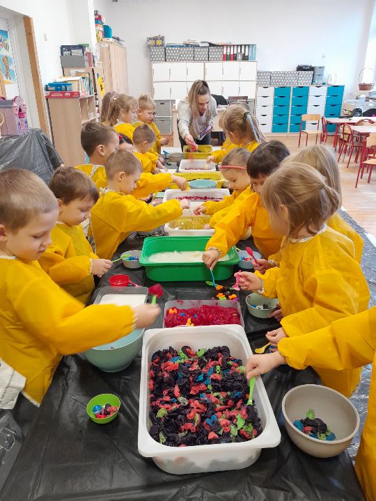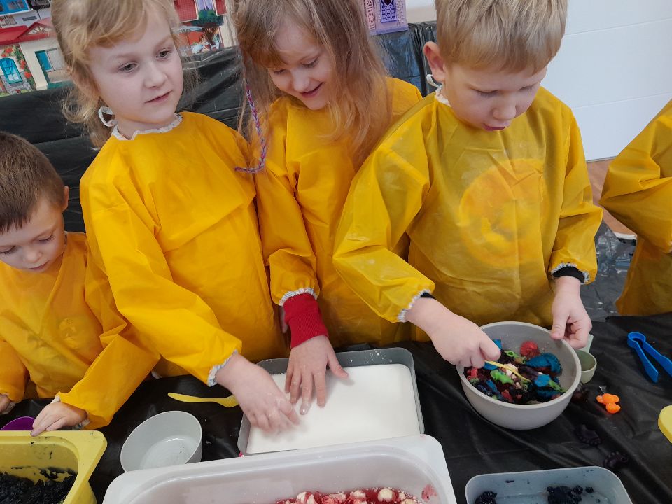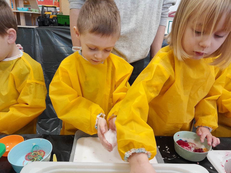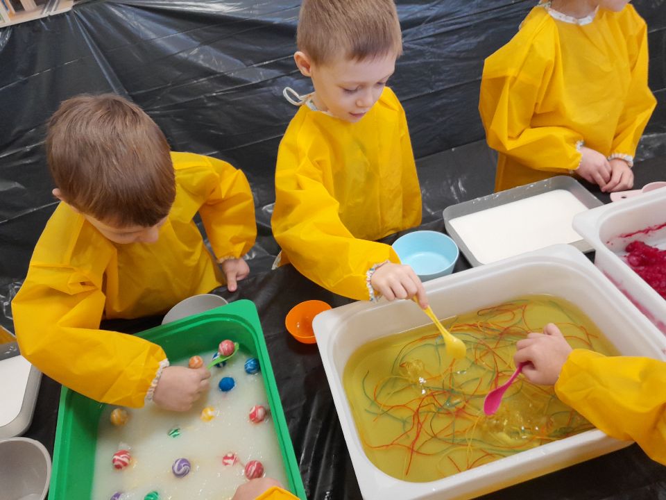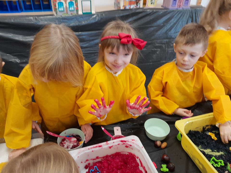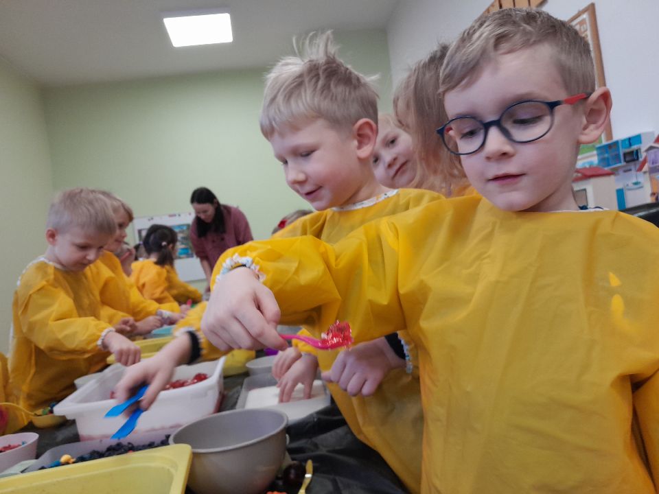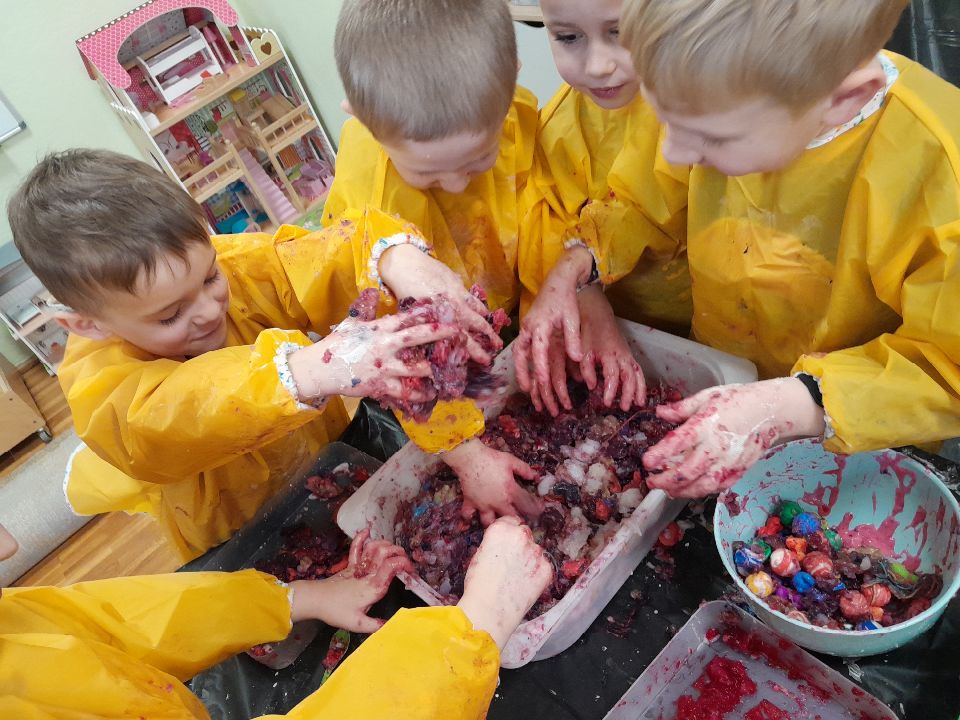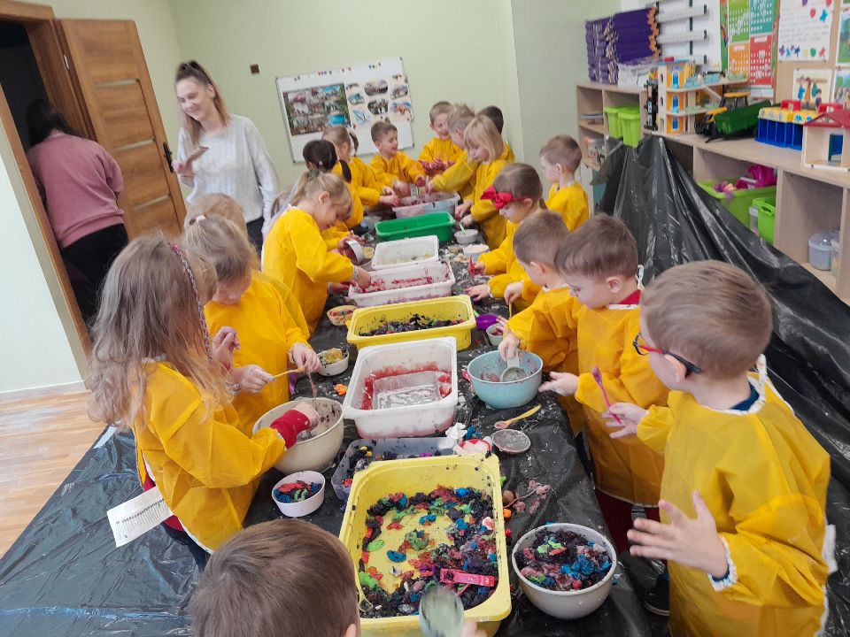 Dzisiaj bawiliśmy się różnymi masami plastycznymi. Były to smakowicie pachnące: galaretka, budyń, kisiel i ciecz nienewtonowska. Ależ to była zabawa.