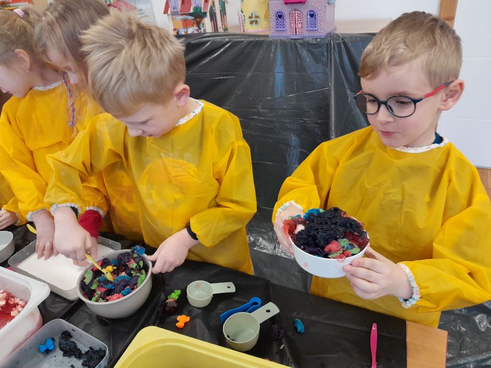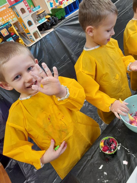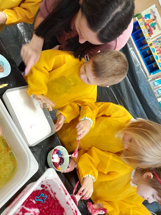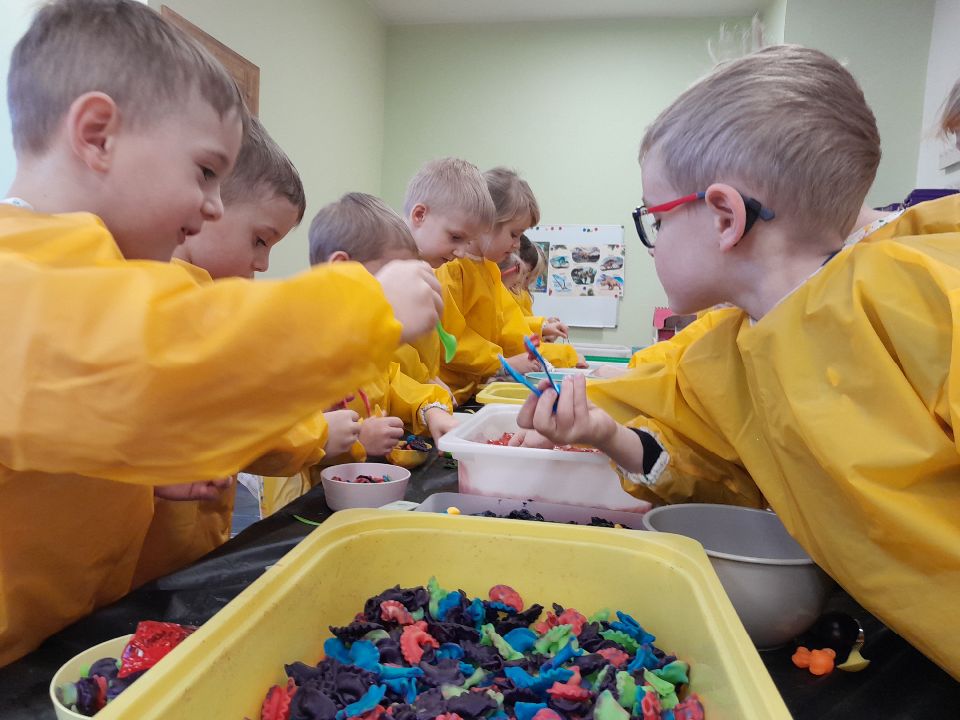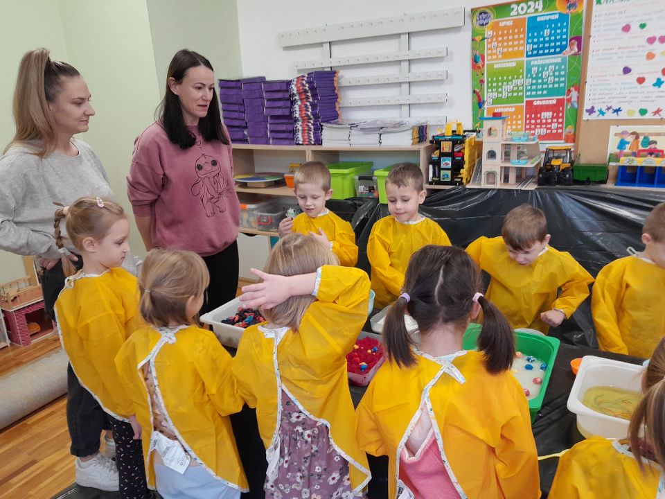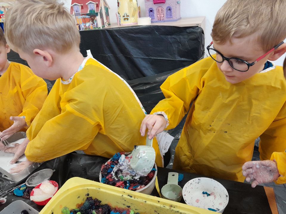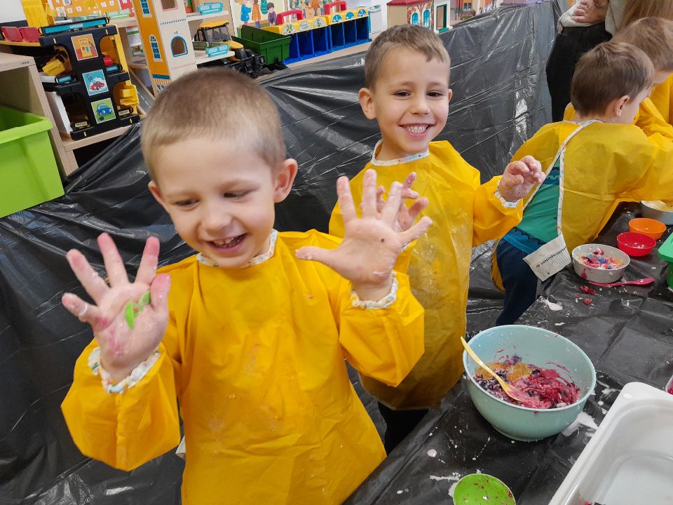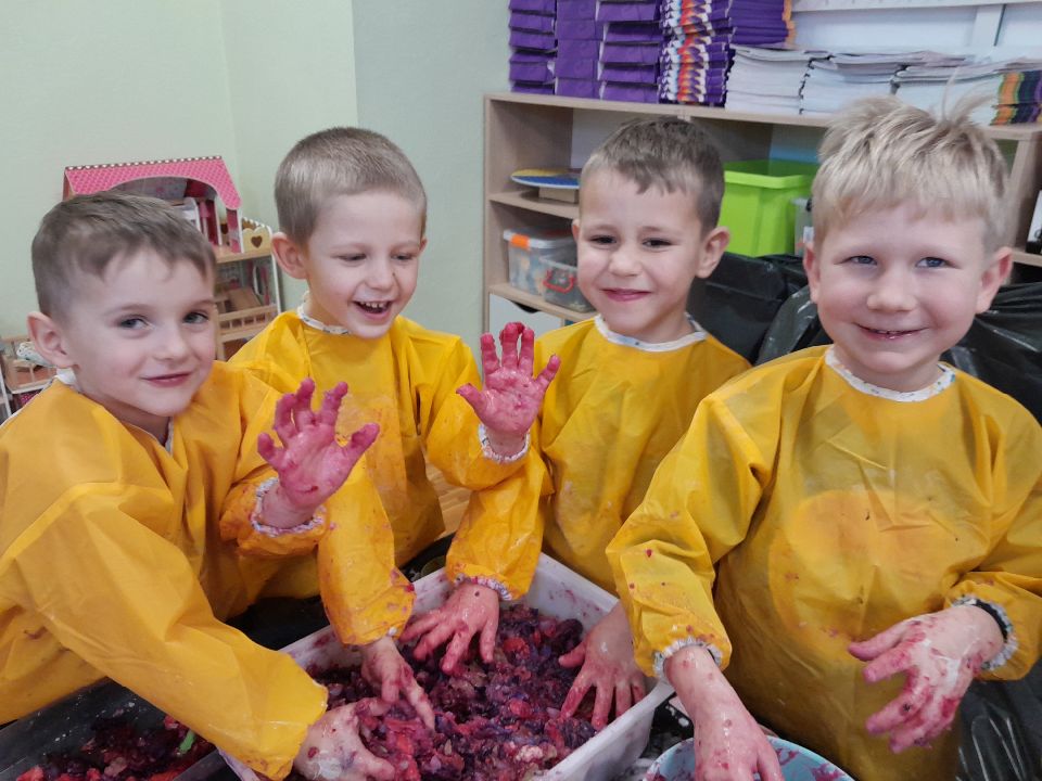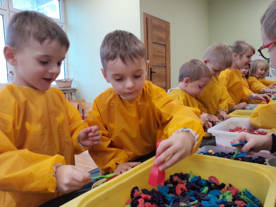 Dzisiaj bawiliśmy się różnymi masami plastycznymi. Były to smakowicie pachnące: galaretka, budyń, kisiel i ciecz nienewtonowska. Ależ to była zabawa.