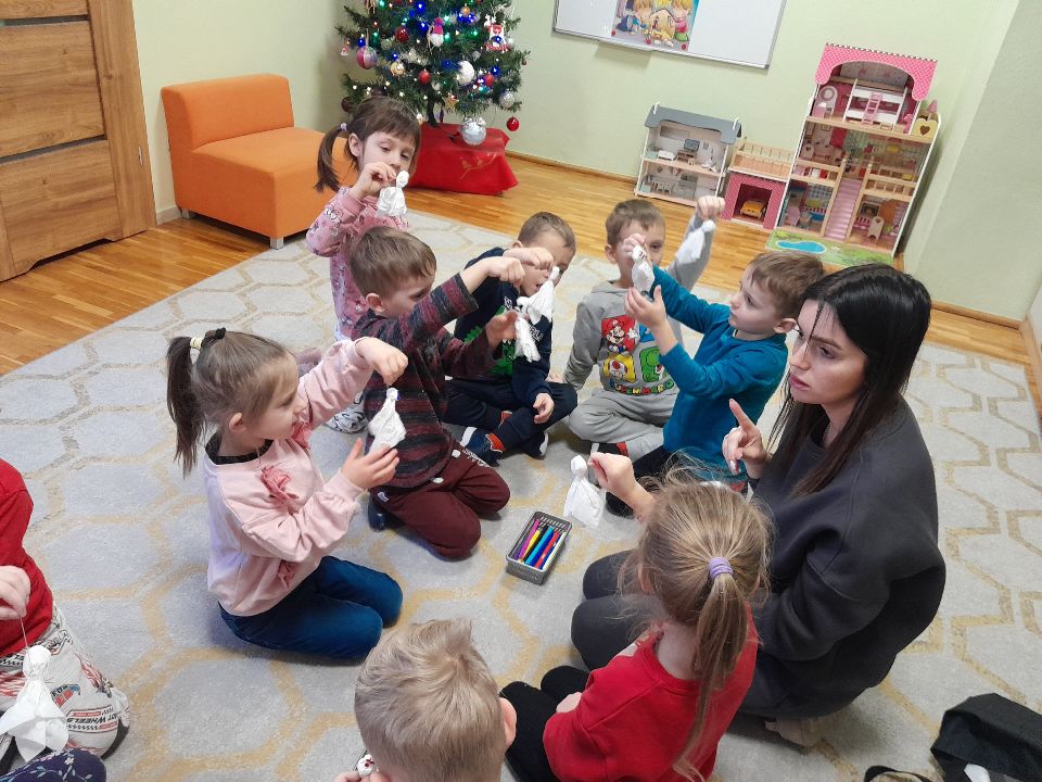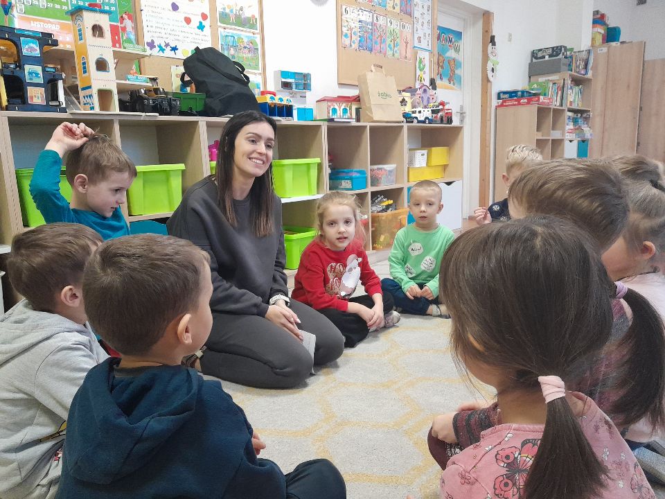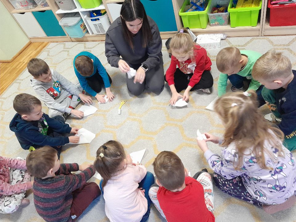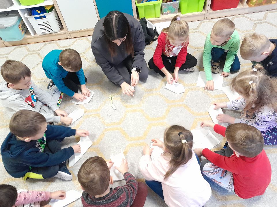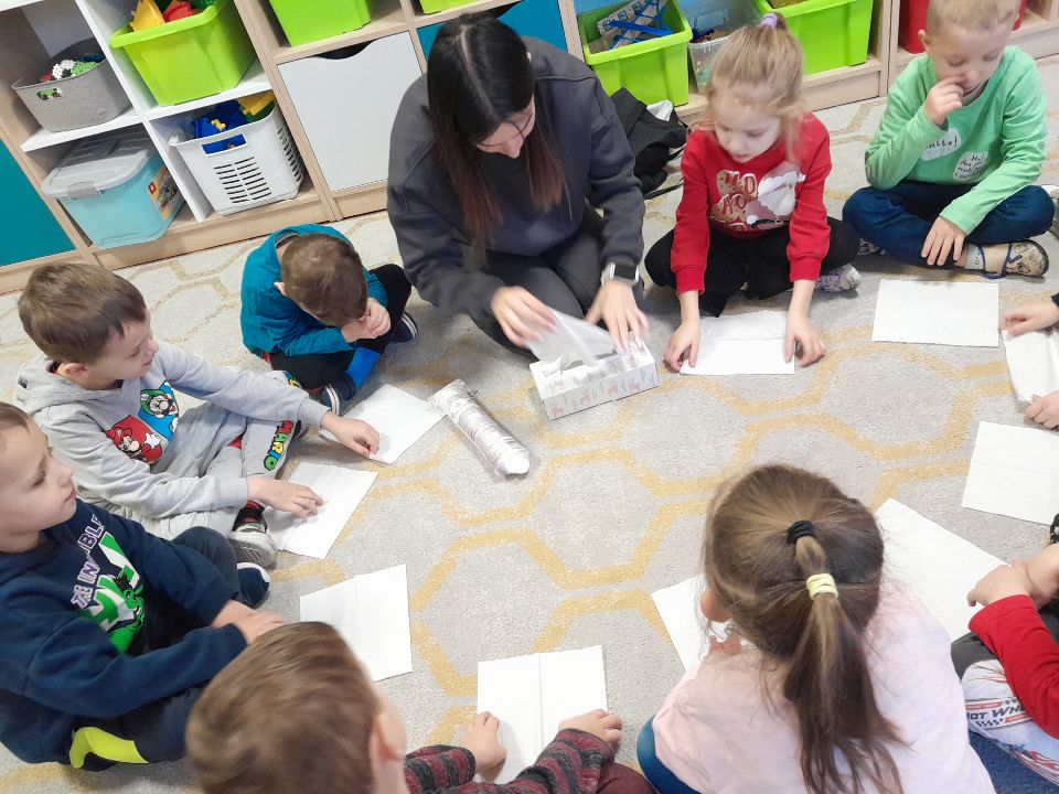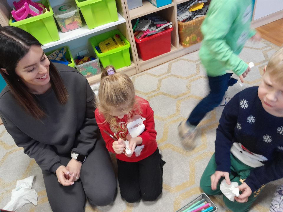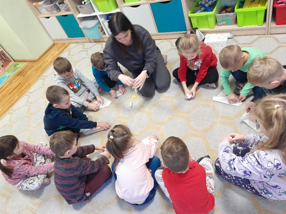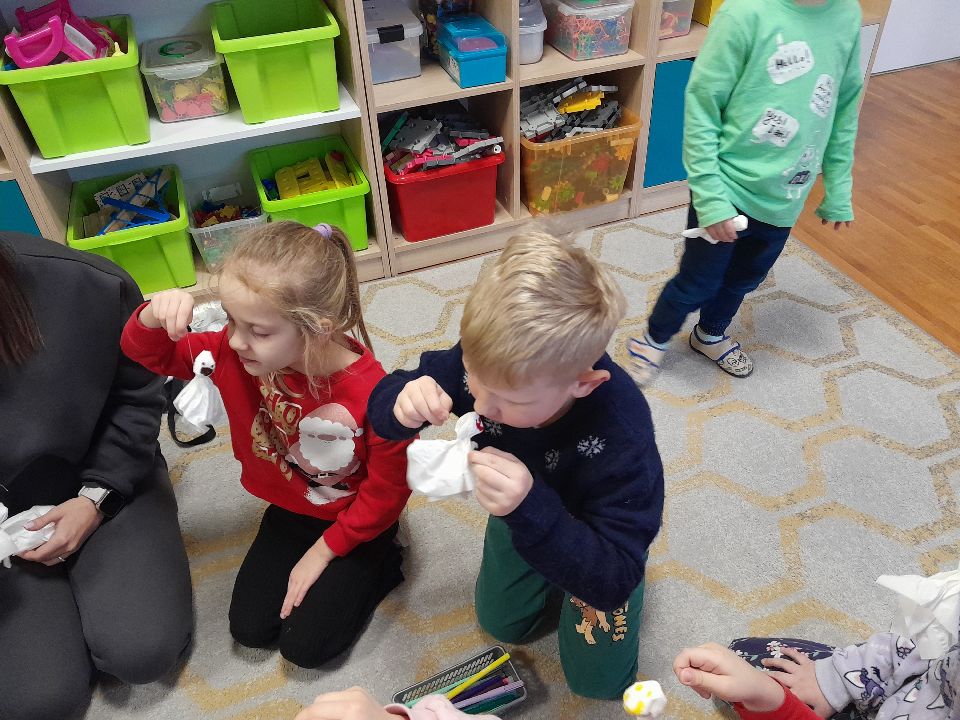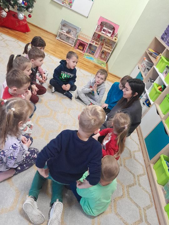W dniu dzisiejszym gościliśmy w naszej grupie Panią Paulinę, która pracuje w przedszkolu jako logopeda. Nasz gość opowiedział nam o swojej pracy i zajęciach, które prowadzi. Następnie wykonaliśmy kilka ćwiczeń językowych razem z krokodylem, "wciągaliśmy" makaron i zrobiliśmy duszka, który pomagał nam w wykonaniu jednego z ćwiczeń.