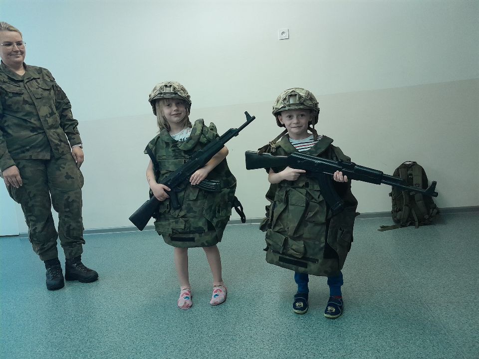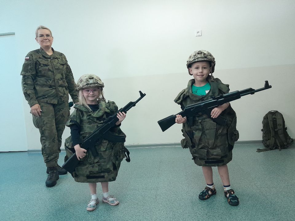 Każdy przedszkolak miał okazję wcielić się w rolę żołnierza– przymierzyć wojskowy hełm, kamizelkę czy inne elementy sprzętu.