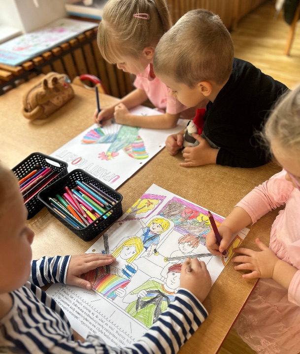 Dzieci z grupy IV odwiedziły Dom Pomocy Społecznej przy ul. Świerkowej, gdzie zaprezentowały występ artystyczny przygotowany z okazji Narodowego Święta Odzyskania Niepodległości. Mali artyści z ogromnym zaangażowaniem recytowali wiersze, śpiewali patriotyczne piosenki.