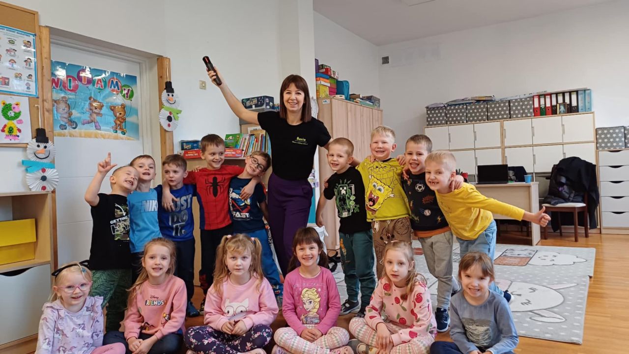 W dniu dzisiejszym gościliśmy w naszej grupie Panią Paulinę, która pracuje w przedszkolu jako logopeda. Nasz gość opowiedział nam o swojej pracy i zajęciach, które prowadzi. Następnie wykonaliśmy kilka ćwiczeń językowych razem z krokodylem, „wciągaliśmy” makaron i zrobiliśmy duszka, który pomagał nam w wykonaniu jednego z ćwiczeń.