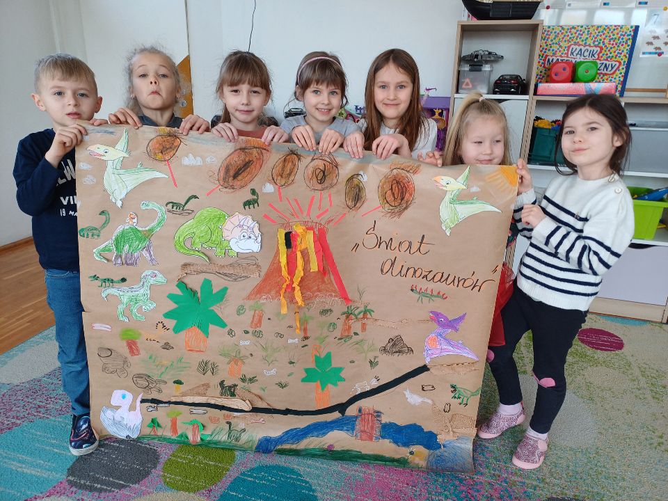 W tym tygodniu poznaliśmy różne ciekawe dinozaury oraz wykonaliśmy makiety przedstawiające świat, w którym żyły dinozaury.