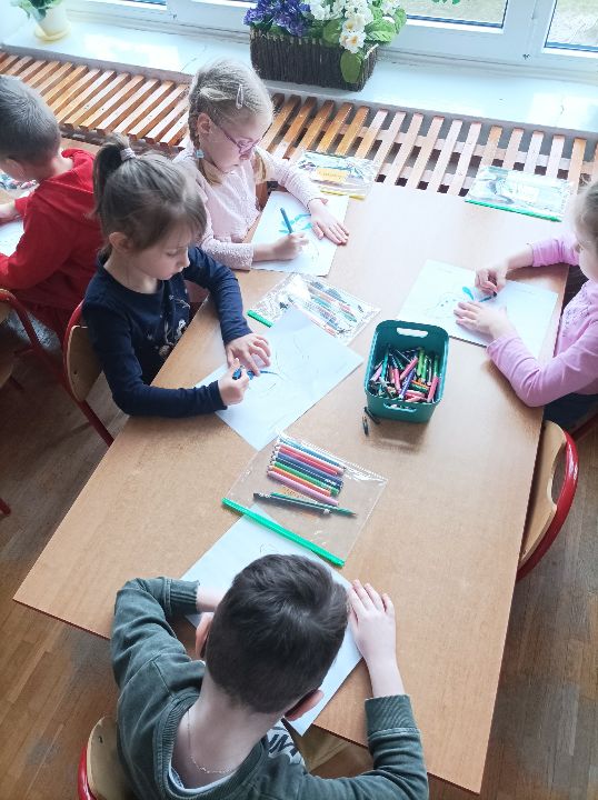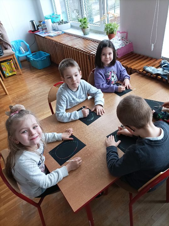 Nasza grupa zakwalifikowała się do udziału w akcji „AjakBox” zorganizowanej przez Fundację „A jak...”. Akcja miała na celu zwiększenie świadomości na temat autyzmu oraz zwrócenie uwagi na potrzebę większej empatii i tolerancji dla osób ze spektrum. Podarowany przez fundację box był wielką niespodzianką. Dzieciom zapoznały się z zawartością, która przyniosła im wiele radości. Wielkim zaskoczeniem był balon wypełniony helem, który wyleciał po otwarciu pudła. Wspólnie pobawiliśmy się balonami, zjedliśmy przepyszne „krówki”, zapoznaliśmy się Krzysiem- głównym bohaterem książki o autyzmie pt.: „Dobry projekt” autorstwa dr Tracy Packiam Alloway. Na koniec wykonaliśmy wspólny plakat.