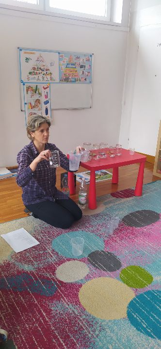 Jeden z obszarów z zakresu edukacji matematycznej, charakterystyczny dla edukacji przedszkolnej, to miara i mierzenie. Dziś podjęliśmy się realizacji kolejnego zadania w ramach projektu „Inkubator edukacji – edukacja matematyczna”, które dotyczyło mierzenia płynów. Dzieci poznały miarę pojemności płynów: 1 litr, pół litra, ćwierć litra. „Rozlewały” wodę i sprawdzały ile w słoiku zajmuje litr wody, a ile pół litra. Czy litr wody można rozlać do dwóch miarek półlitrowych? Oglądały też i porównywały różne rodzaje miarek.