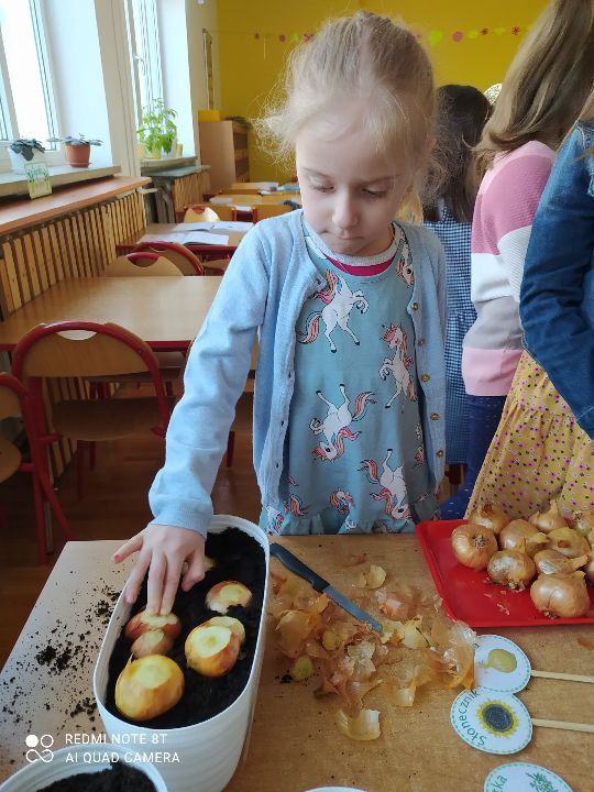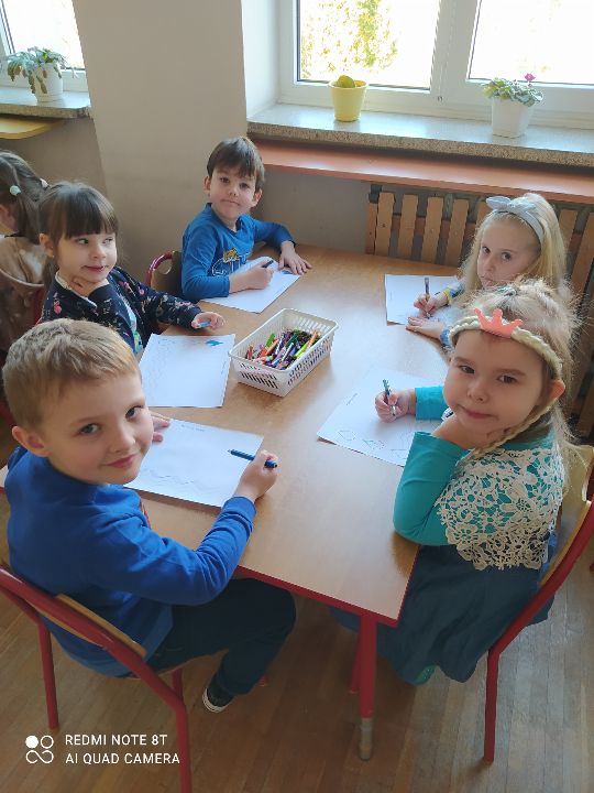 Dnia 22 marca obchodzony jest Światowy Dzień Wody. Ubrane na niebiesko przedszkolaki z grupy V również przyłączyły się do świętowania. Określały właściwości wody min. zapach, kolor, porównywały objętość wody w zależności od naczynia, w którym się znajduje woda. Ustaliły, że należy wodę oszczędzać i podały w jaki sposób powinniśmy to robić w domu. Plansza zobrazowała w jaki sposób woda krąży w przyrodzie, a film edukacyjny „Woda wokół nas” pokazał ile wody jest na Ziemi, a ile w ciele człowieka, jak woda trafia do naszych domów i co dzieje się ze ściekami. Oczywiście do wykonania była też karta pracy.