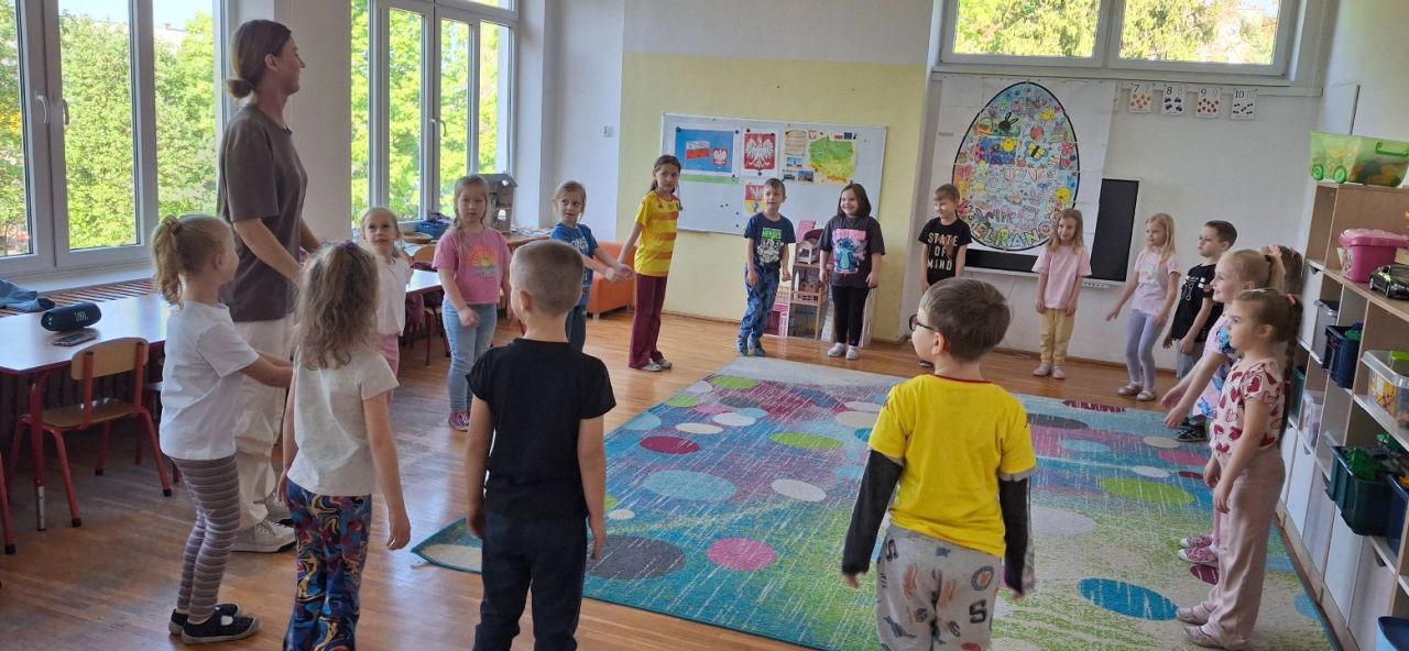 Dzisiaj nasze przedszkolaki czekała wyjątkowa atrakcja – odwiedziła nas mama Ali, która poprowadziła energetyczne zajęcia taneczne! Dzieci z radością uczyły się kroków, poruszały się w rytm muzyki i świetnie się bawiły. Na zakończenie każdy uczestnik otrzymał kolorową naklejkę jako nagrodę za zaangażowanie. Dziękujemy za tę pełną uśmiechu i ruchu niespodziankę!