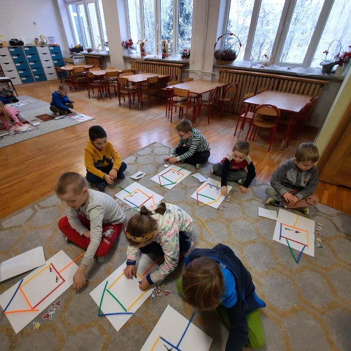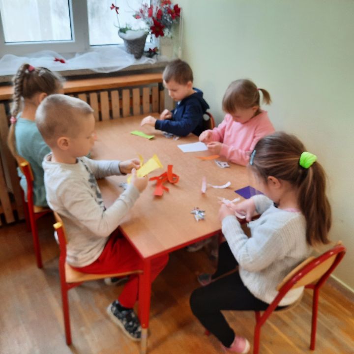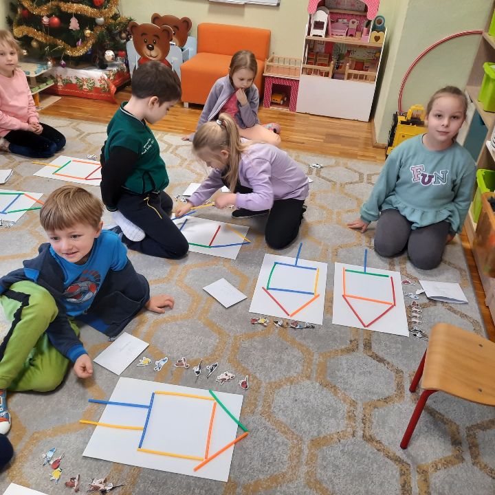 ,,Dodawanie to jest takie dokładanie..." W taki sposób my właśnie uczyliśmy się dodawać i dokładaliśmy wycięte przez siebie ptaszki do karmników ułożonych z plastikowych słomek. Wykonane działanie zapisywaliśmy za pomocą cyfr i znaków,a na koniec zrobiliśmy papierowe karmniki metodą wydzieranki i umieściliśmy tam nasze matematyczne ptaszki.