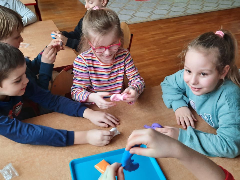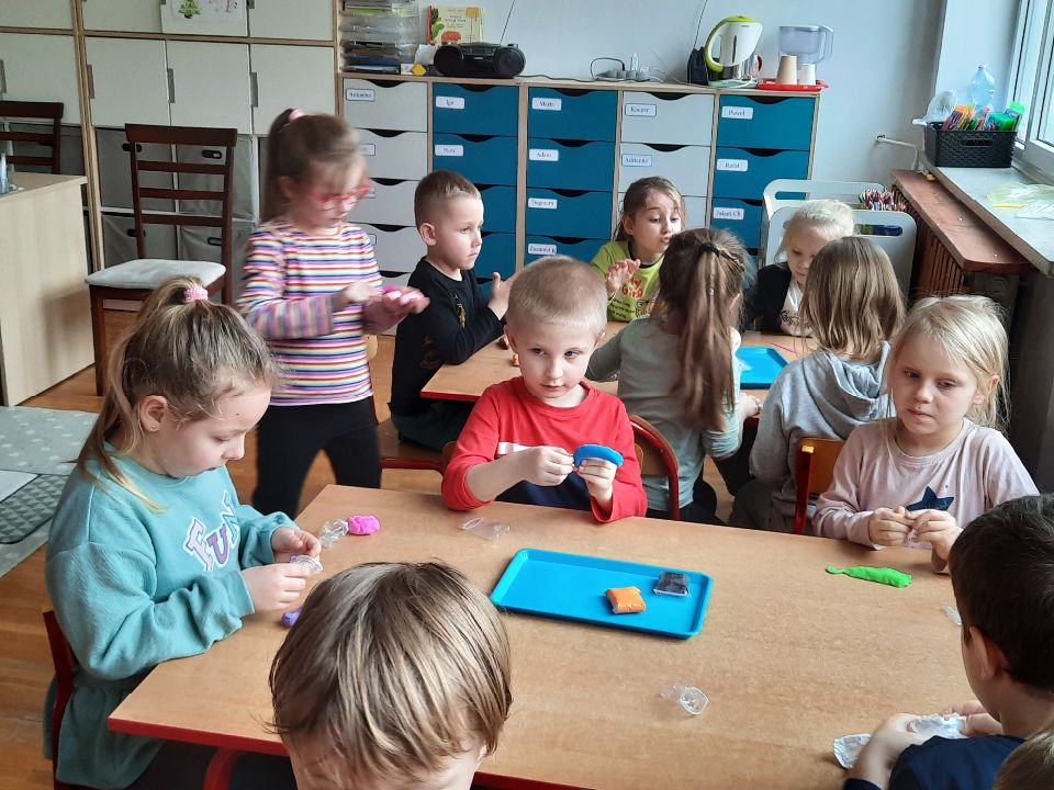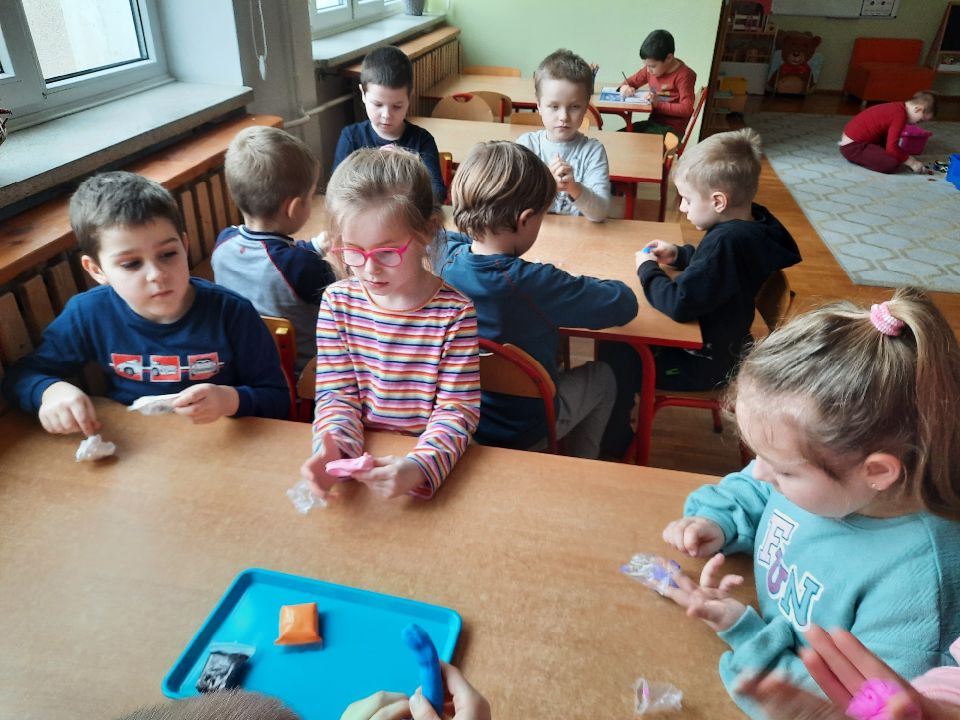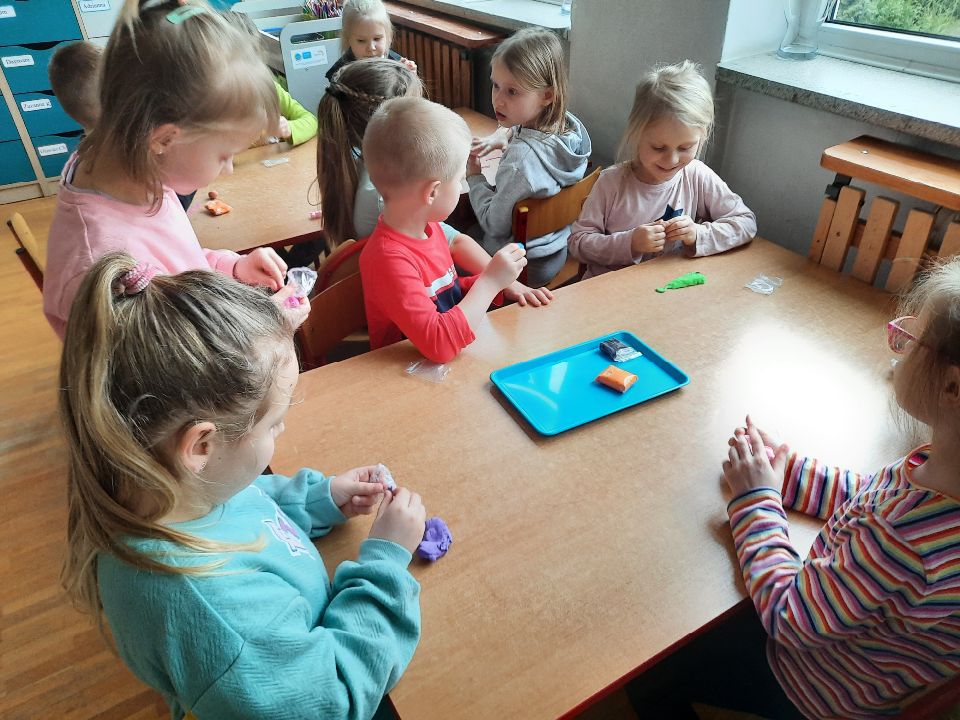 Piankolina -co to takiego? Już wyjaśniamy. Jest to masa plastyczna o wyjątkowych właściwościach. A co najważniejsze nie brudzi. Można się nią bawić nawet na obrusie, ręce są czyste i nawet kulka z niej zrobiona, która skacze jak piłka, odbita o ścianę czy drzwi nie zostawia śladu. Piankolina otwiera przed dziećmi nieograniczone możliwości zabawy. W dniu otwartych drzwi cieszyła się ogromnym zainteresowaniem wśród naszych dzieci i jak widać trwa to nadal🙂