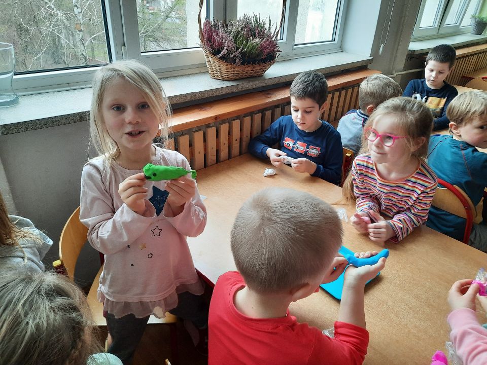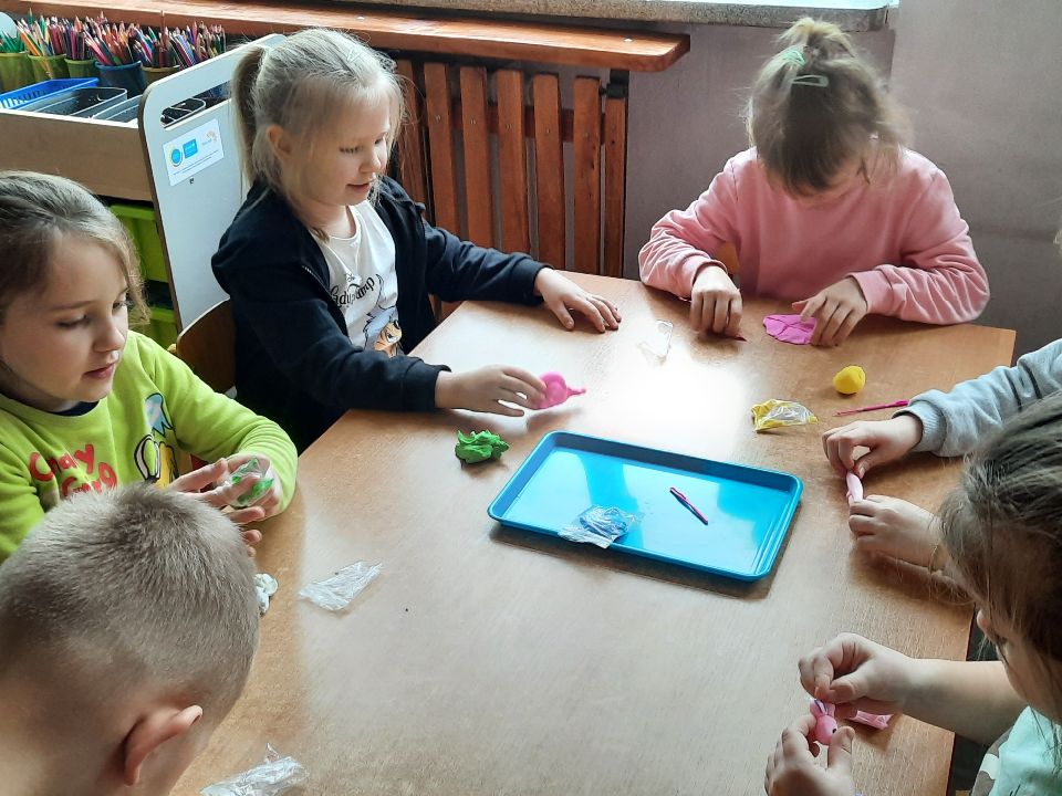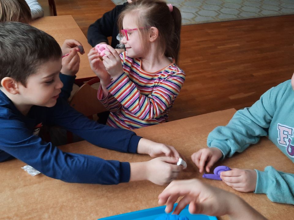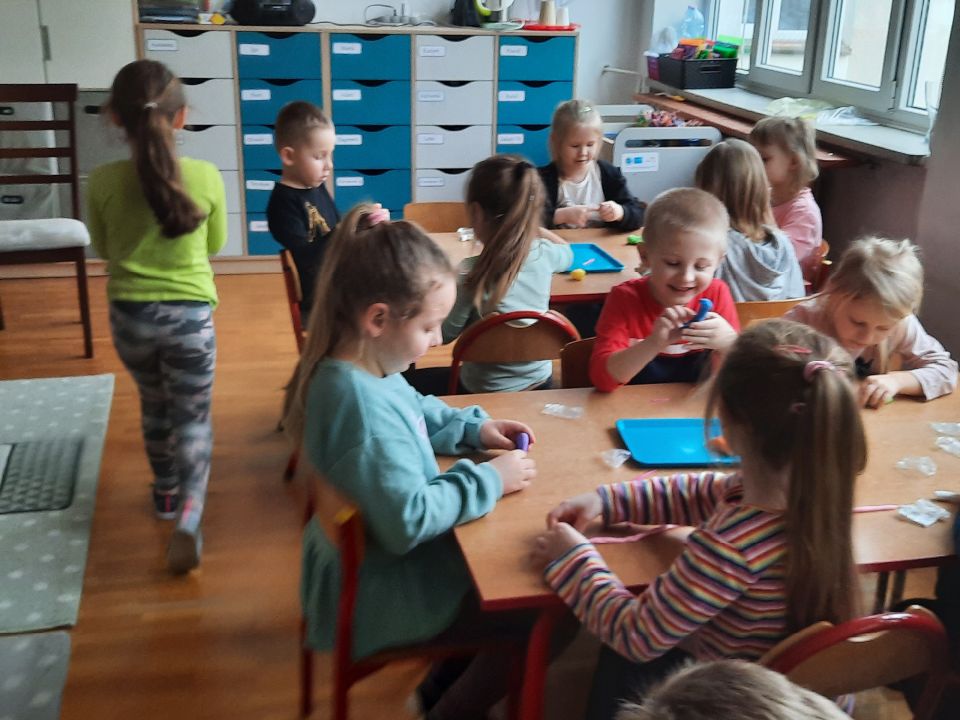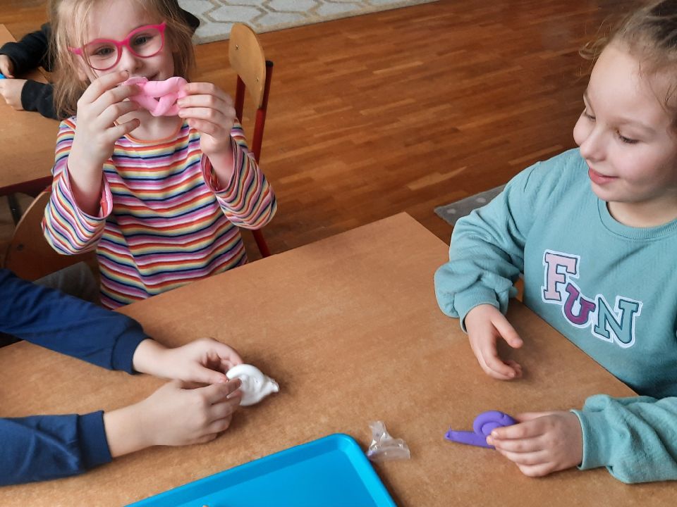 Piankolina -co to takiego? Już wyjaśniamy. Jest to masa plastyczna o wyjątkowych właściwościach. A co najważniejsze nie brudzi. Można się nią bawić nawet na obrusie, ręce są czyste i nawet kulka z niej zrobiona, która skacze jak piłka, odbita o ścianę czy drzwi nie zostawia śladu. Piankolina otwiera przed dziećmi nieograniczone możliwości zabawy. W dniu otwartych drzwi cieszyła się ogromnym zainteresowaniem wśród naszych dzieci i jak widać trwa to nadal🙂