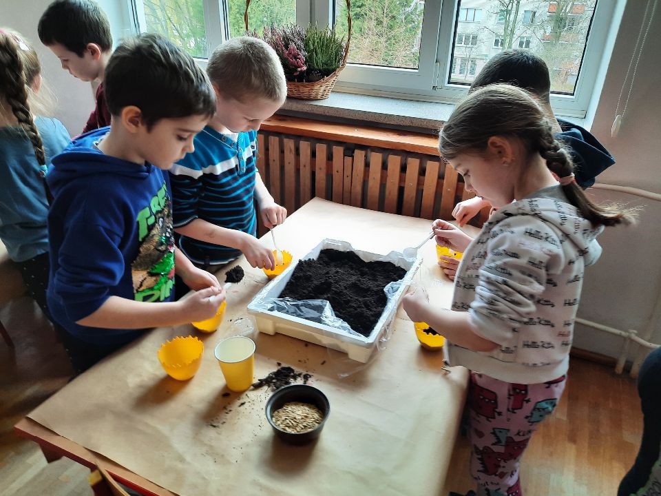 Po co siejemy owies? To taki zwyczaj wielkanocny- symbol tego co wzrasta, zapewniający w domu dostatek. Wielkanoc to zielone święta dlatego tego koloru nie może zabraknąć w żadnym domu, gdyż zieleń to RADOŚĆ i NADZIEJA. Aby cieszyć się zielonym źdźbłami owsa na wielkanocnym stole wysialiśmy go w naszym zielonym ogródku. Mamy nadzieję, że wzejdzie do KIERMASZU organizowanego w naszym przedszkolu. KIERMASZU organizowanego na szczytny cel - pomoc Rodzinie z naszego przedszkola będącej w potrzebie. Ale, nawet jeśli teraz będzie jeszcze malutki, to udekorowany napewno pokaże się w całej krasie na święta.🐣🐰🌱🌱🐏