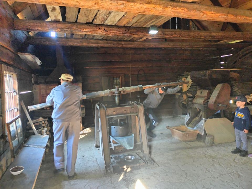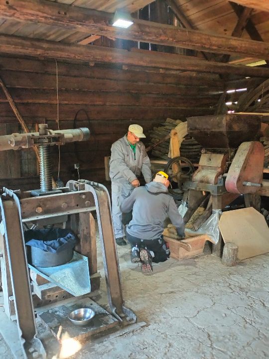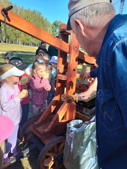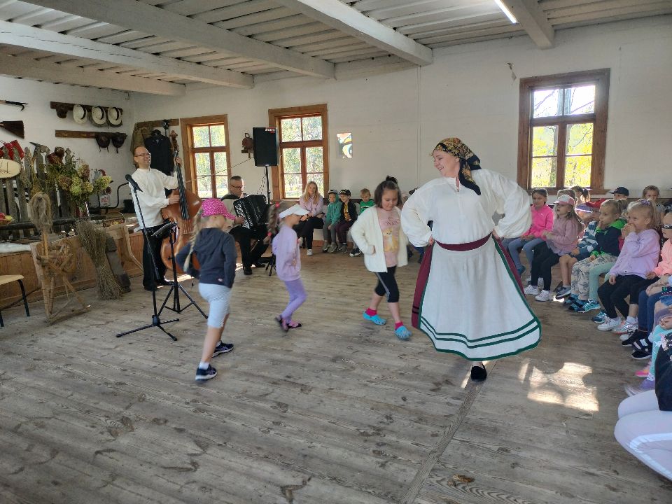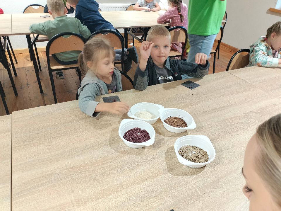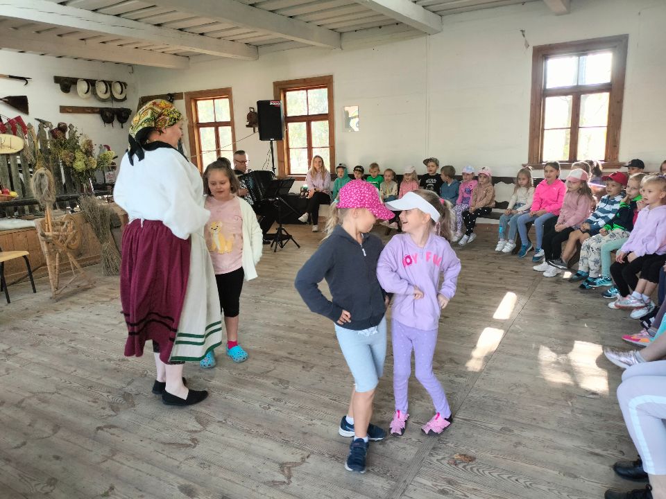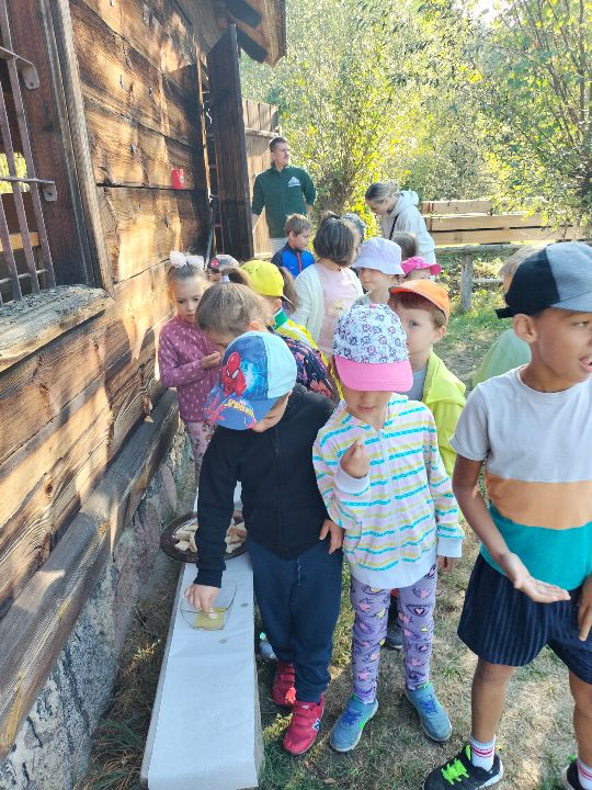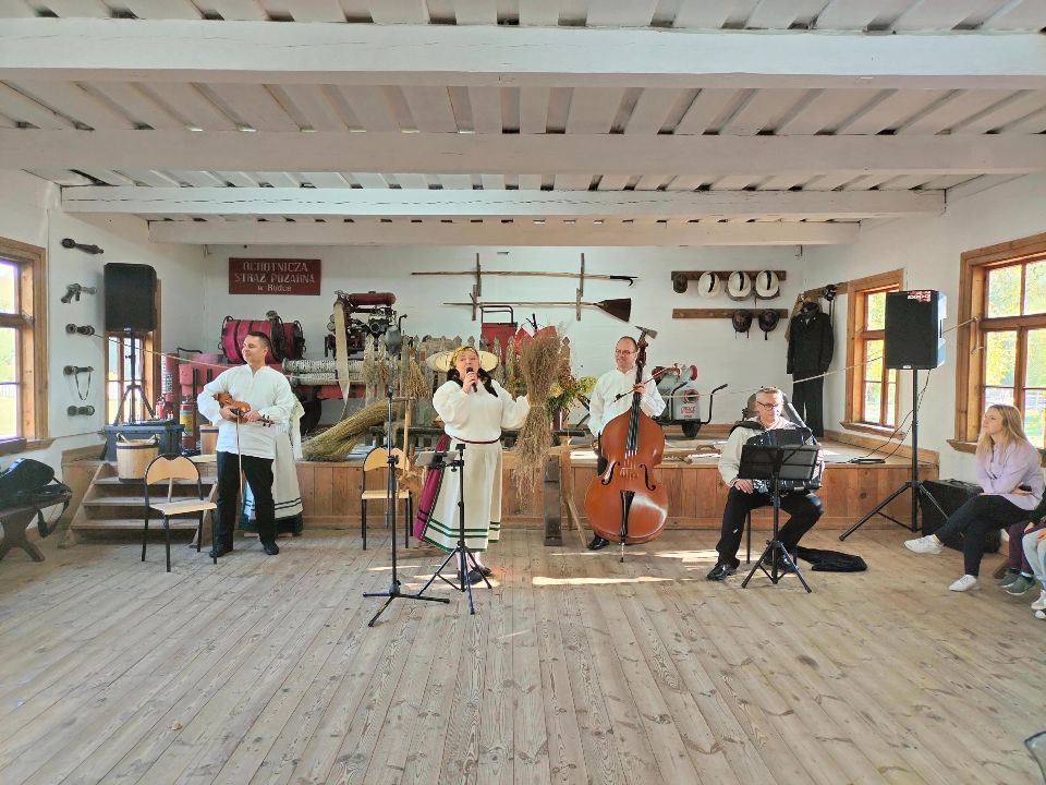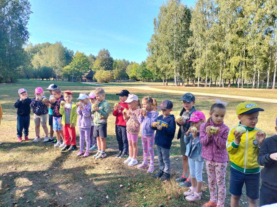 Dnia 23.09.2024 roku nasza grupa wspólnie z grupą V wybrała się na wycieczkę do Podlaskiego Muzeum Kultury Ludowej na warsztaty pt.: "Babie lato w skansenie". Na początku dzieci mogły zaobserwować jak dawniej wyglądał proces wyciskania soków owocowych i tłoczenia oleju. Oczywiście czekała na nas degustacja świeżo wyciśniętych specjałów. Następnie uczestniczyliśmy w audycji muzycznej "Nasze Podlasie" w dźwiękach jesieni, podczas której posłuchaliśmy znanych pieśni ludowych. Na koniec każdy przedszkolak wykonał obrazek z ziaren, który mógł zabrać na pamiątkę do domu. Wróciliśmy bardzo zadowoleni i uśmiechnięci.