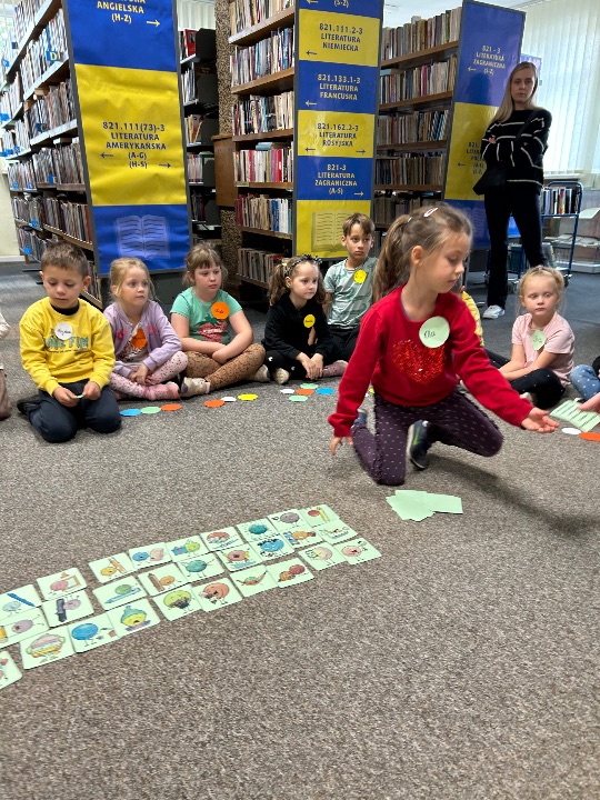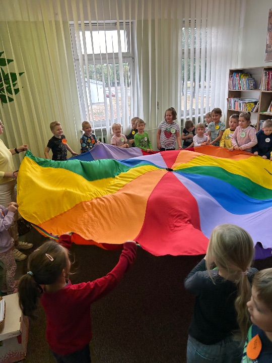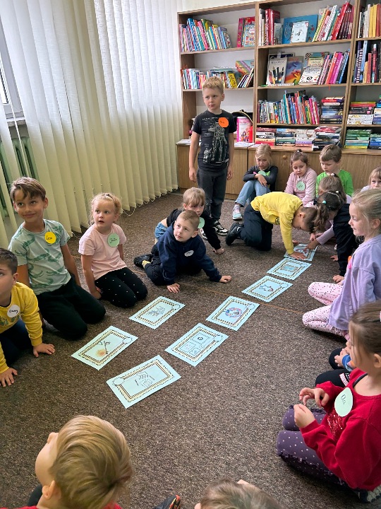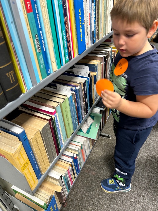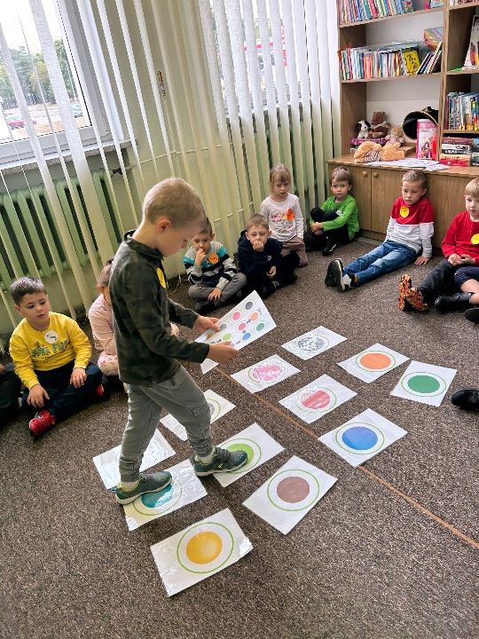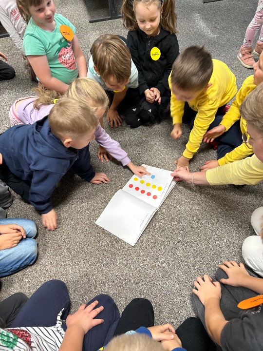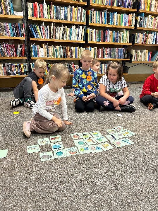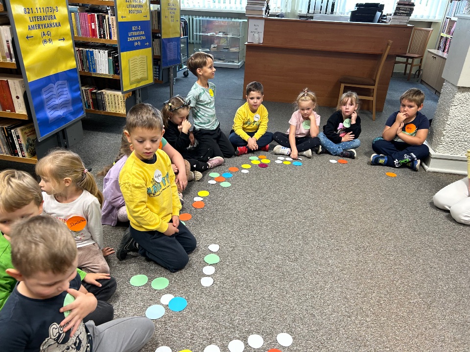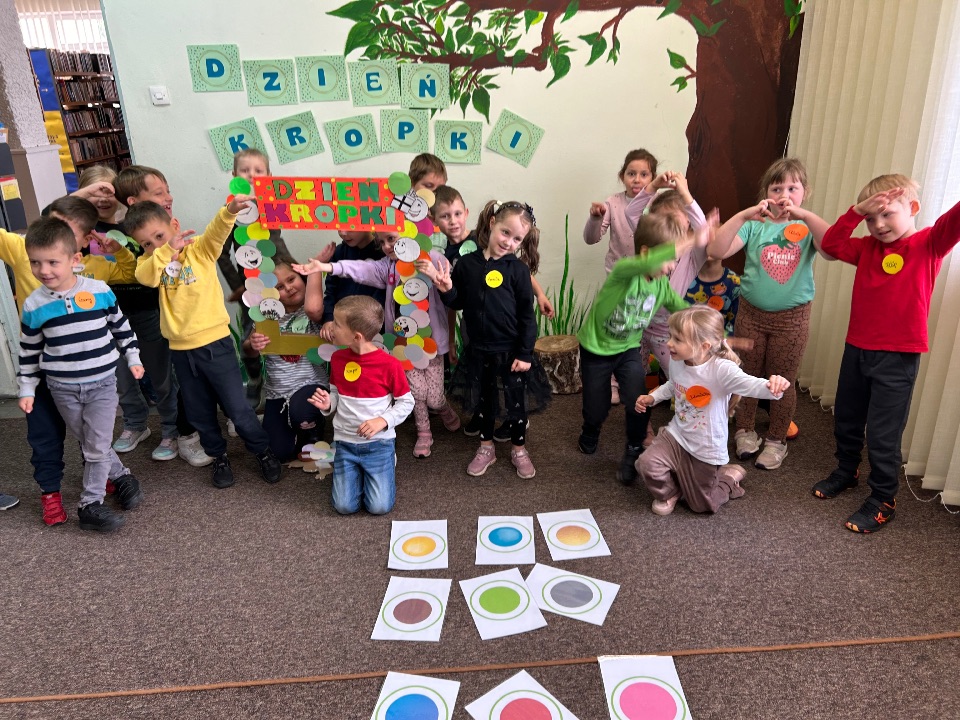 W dniu dzisiejszym byliśmy na zajęciach kreatywnych „Dzień kropki”w bibliotece Klubu 18 Pułku Rozpoznawczego przy ul. Kawaleryjskiej . Podczas zajęć dzieci wypowiadały się co lubią robić , jaką książkę ostatnio czytały , szukały kropek na półkach z książkami ,była zabawa z chustą animacyjną , kodowanie z kropkami ,gra memory.