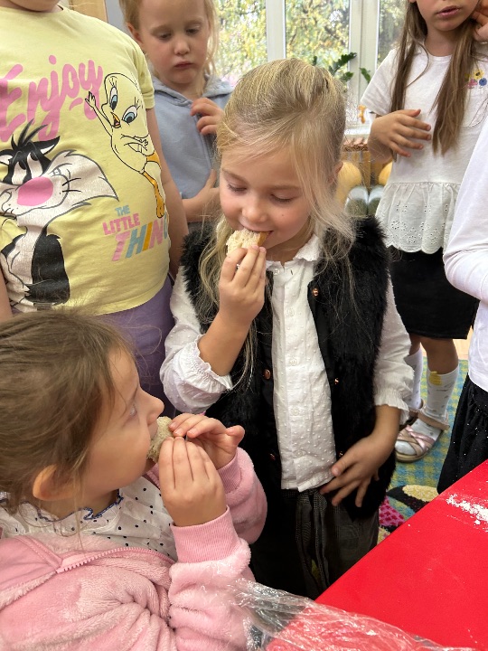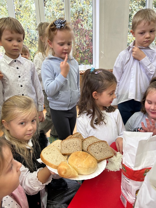 Kolejne zajęcie z projektu Przedszkolna akademia nauki.Dzieci poznały etapy powstania chleba.