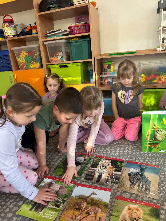 Podczas dzisiejszych zajęć z projektu Przedszkolna akademia nauki , dzieci poznały zwierzęta leśne i egzotyczne.
