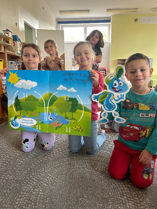 Bez wody nie można żyć – o tym wiedzą wszyscy. Jest ona niezbędna do życia człowiekowi, zwierzętom i roślinom. Korzystamy z wody codziennie i jest to dla nas fakt tak oczywisty, że nie zastanawiamy się nad nim, np. idąc rano do łazienki. Przedszkolaki zapoznały się ze zjawiskiem krążenia wody w przyrodzie, opisywały jaki ma kolor woda, smak .