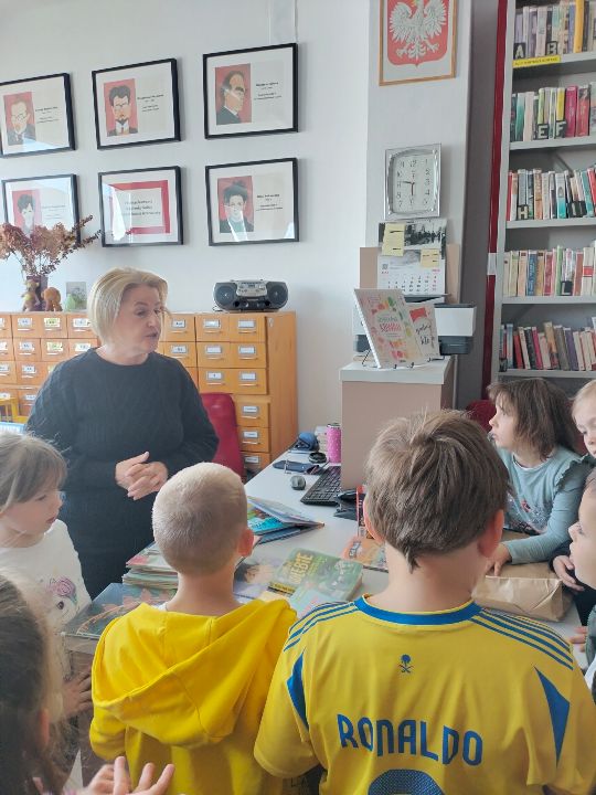 Spotkanie zostało zorganizowane z okazji "Dnia Bibliotekarza i Bibliotek". Z tej okazji, wszystkim Paniom pracującym w bibliotece szkolnej, składamy najserdeczniejsze życzenia, niegasnącej pasji i wielu inspirujących spotkań z czytelnikami. Pragniemy również podziękować za kolejne zaproszenie. Jak zawsze dzieci wróciły bardzo zadowolone i z upominkiem w ręku. Dziękujemy!