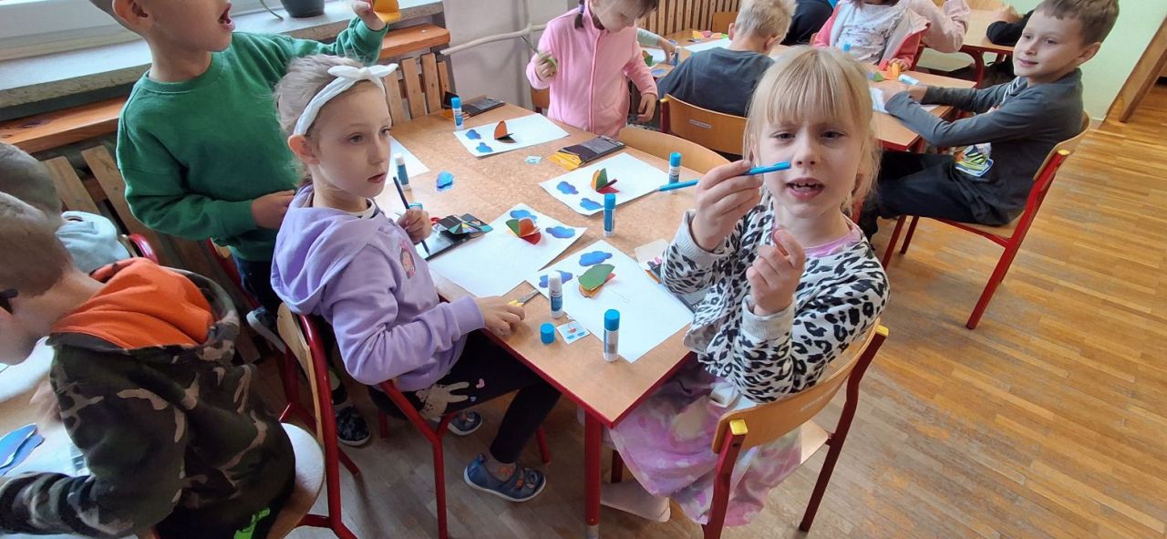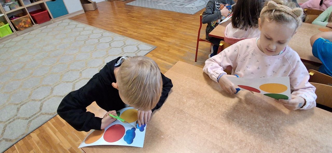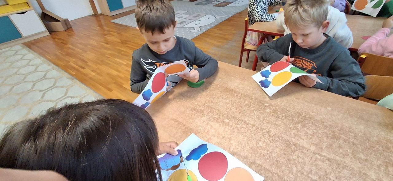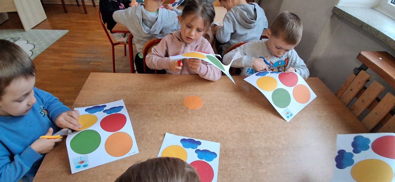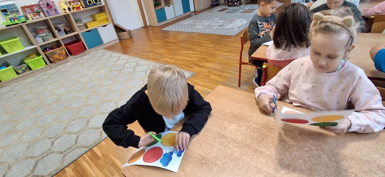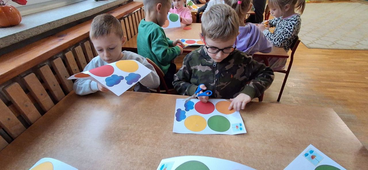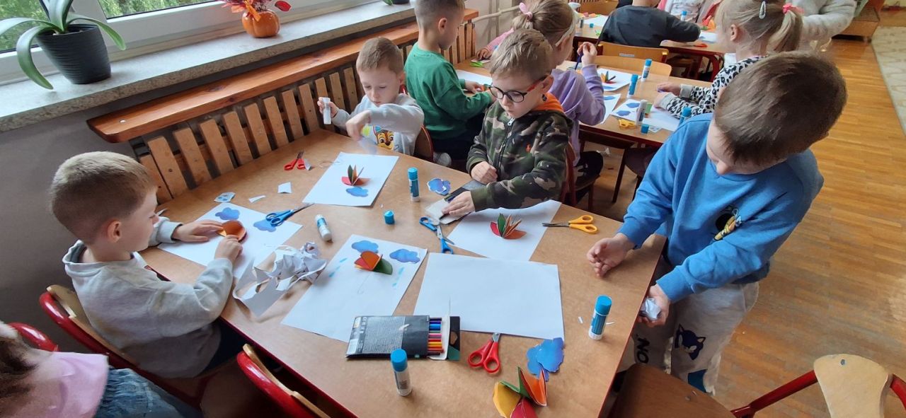 Żeby umilić sobie jesienną pogodę, nasze przedszkolaki wykonały dziś kolorowe parasole.