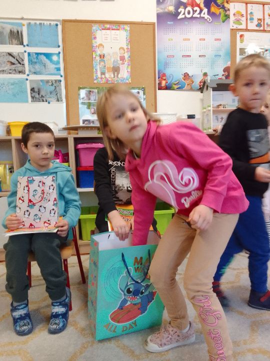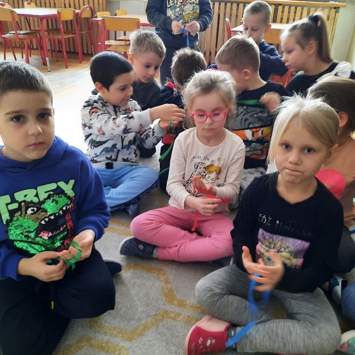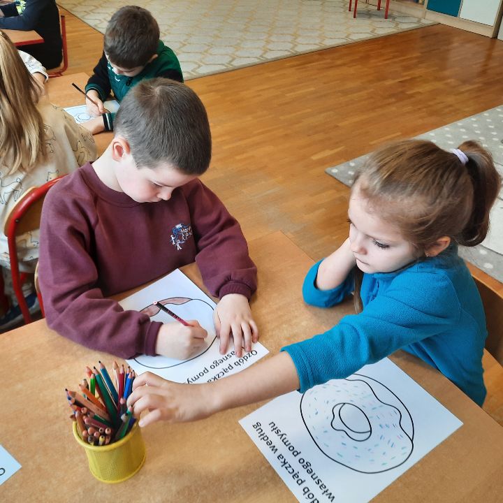 Tłusty czwartek to doskonała okazja by połączyć zabawę z nauką i kreatywnością. Były więc kreatywne gry i zabawy z pączkami w roli głównej. Kreatywne rysowanie i ozdabianie pączka według własnego pomysłu. Pączkowy wyścig i przenoszenie pączków- piłeczek na tacy. Liczba piłek zmniejszała się, a te które zostały hulały sobie po tacce i skakały na podłogę ( dobrze,że to nieprawdziwe pączki bo trochę by się ich nie nadawało do jedzenia). Było jeszcze pączkowe memory i pączkowe kółko i krzyżyk, po które dzieci sięgają cały czas. Aha zobaczyliśmy jeszcze jak wyglądają pączki na całym świecie i byliśmy w przedszkolnej kuchni, żeby zobaczyć jak te delicje robią nasze Panie Kucharki. Potem już tylko degustacja. A zdjęcia z degustacji na stronie głównej przedszkola.
