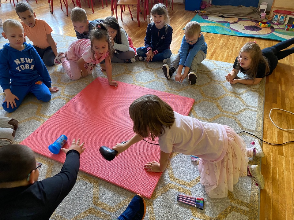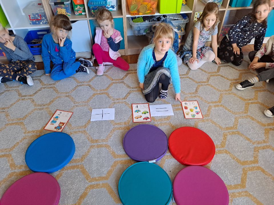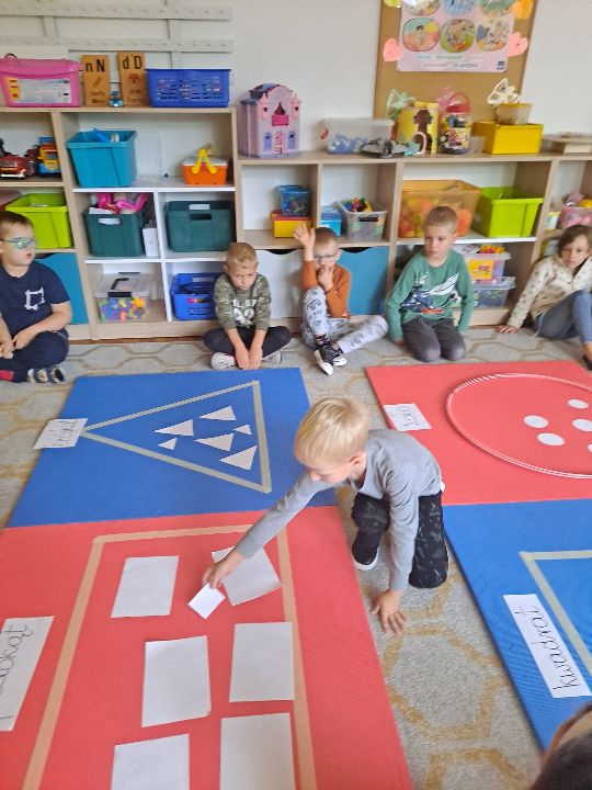 Dziś sześciolatki pilnie brały udział w zajęciach poświęconych dopasowywaniu figur geometrycznych. Utrwaliliśmy sobie podstawow kształty figur i tym samym zralizowaliśmy kolejny punkt projektu „Inkubator edukacji- edukacja matematyczna”