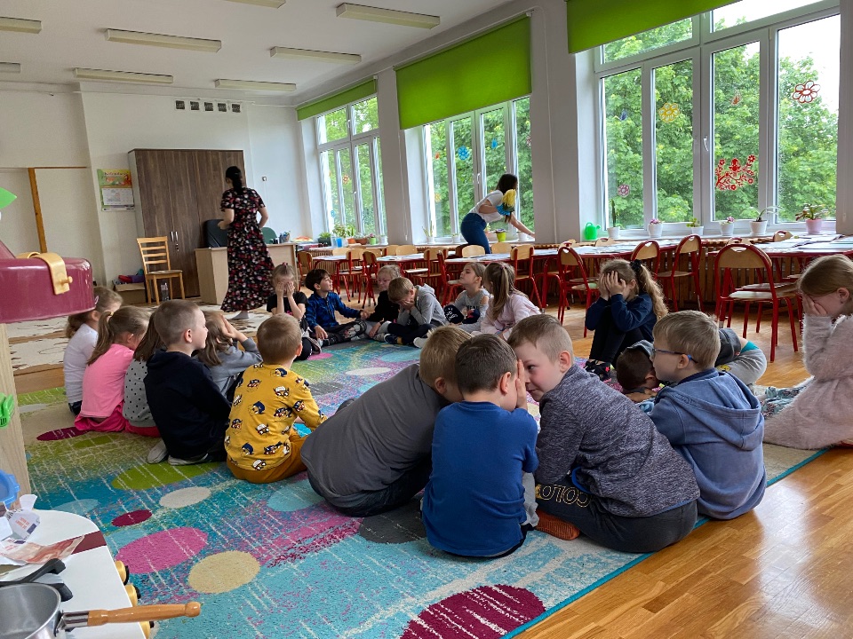 W poniedziałek 06.06.2022r. dzieci z naszej grupy miały okazję uczestniczyć w spotkaniu z pracownikiem Straży Miejskiej, panem Jarosławem oraz jego psem Kold. Podczas tego spotkania przedszkolaki utrwaliły swoje wiadomości dotyczące właściwego postępowania w przypadku kontaktu z nieznajomym psem. Na koniec mogły podziwiać sztuczki jakie zaprezentował pies na komendę swego pana.