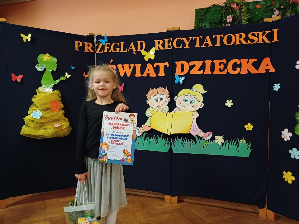 Miło nam poinformować, że Kaja z grupy IV oraz Aleksandra z grupy V reprezentowały dziś "Podlaskie Smyki" w przeglądzie recytatorskim "Świat Dziecka" zorganizowanym przez Przedszkole Samorządowe nr 43 w Białymstoku. Dziewczynki otrzymały pamiątkowe dyplomy oraz upominki za udział. Gratulujemy!