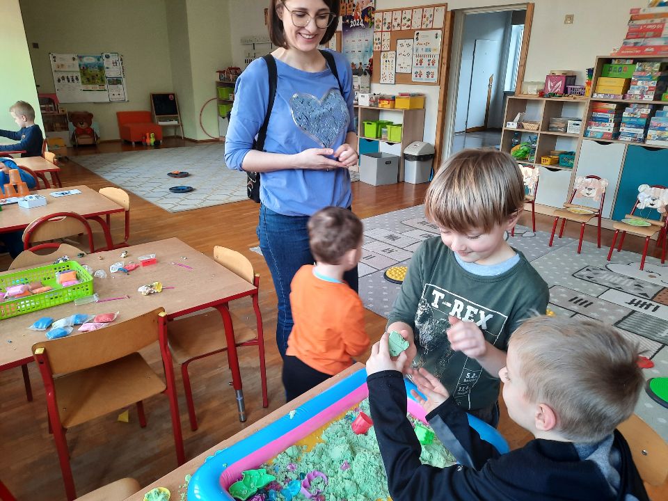 W dniu 26.02.2024 roku w naszym przedszkolu odbył się dzień otwarty dla dzieci, które od września rozpoczną swoją przygodę w "Podlaskich Smykach". Wszystkich przybyłych gości przywitała pani dyrektor Magdalena Sieprawska, która przybliżyła rodzicom organizację pracy i funkcjonowanie placówki, jako środowiska przyjaznego dziecku, otwartego na jego potrzeby oraz wychodzącego naprzeciw oczekiwaniom rodziców. Dla miłych gości przewidziano wiele atrakcji. Dzieci wraz z rodzicami miały możliwość zwiedzania przedszkola, uczestnictwa w zabawach muzyczno – ruchowych, plastycznych oraz zabaw z wykorzystaniem tablicy interaktywnej prowadzonych przez nauczycieli przedszkola. Rodzice mieli również możliwość porozmawiania z nauczycielami oraz uzyskania porad i wskazówek, które ułatwiłyby start ich dzieciom w przedszkolu. Bardzo dziękujemy za przyjęcie naszego zaproszenia. Mamy nadzieję, że dla każdego z naszych gości – dzieci oraz ich rodziców był to mile spędzony czas.