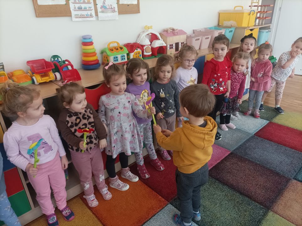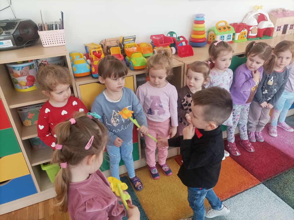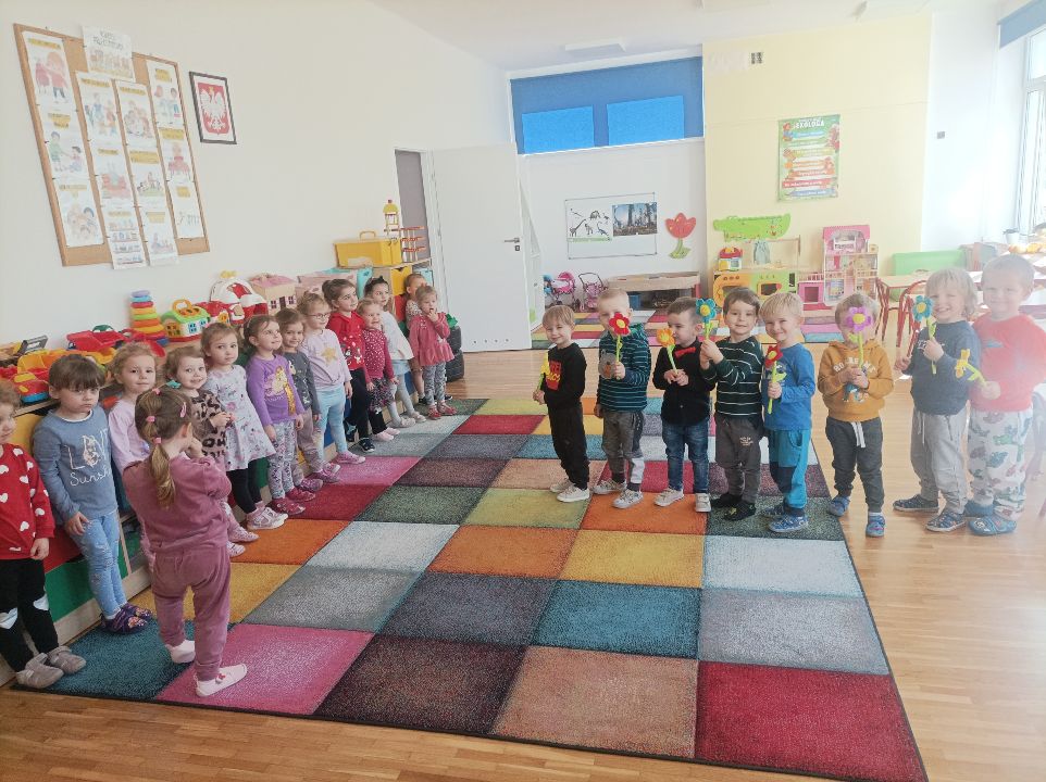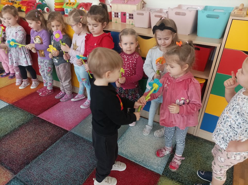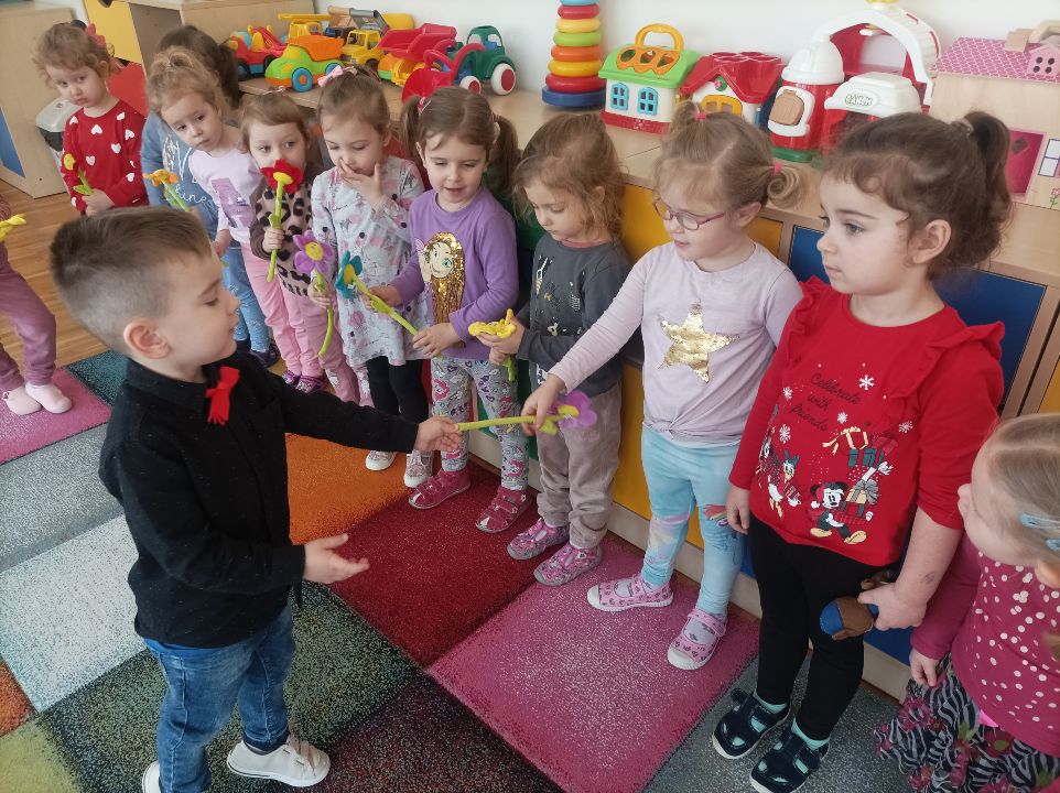 Jak co roku, 8 marca kobiety te duże i małe obchodzą swoje święto. Od rana w przedszkolu również panowała świąteczna atmosfera. Chłopcy składali życzenia swoim koleżankom oraz paniom. Były kwiatki, słodkie upominki, zaś przedszkolaki z grupy VI przygotowały część artystyczną dla wszystkich pań pracujących w przedszkolu. Były piękne wiersze i piosenki, a także tradycyjne goździki.